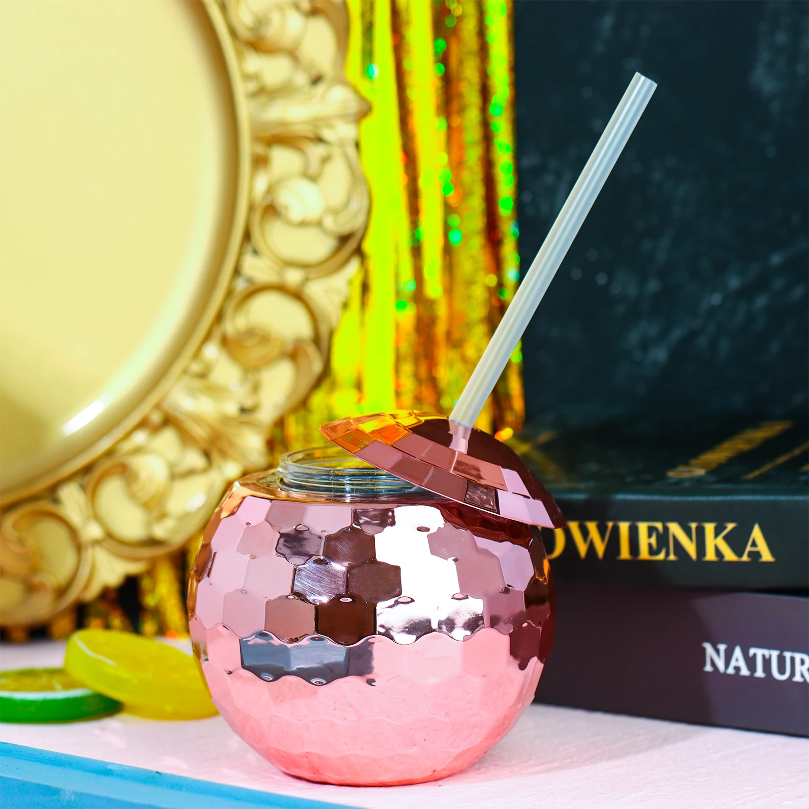 🥤【Ретро дизайн 】 корпус чашки принимает форму диско-шар светильник, и корпус чашки может отражать эффект мигания шариков с разных углов. Это уникальная чашка для KTV, ночных клубов, баров и вечеринок.