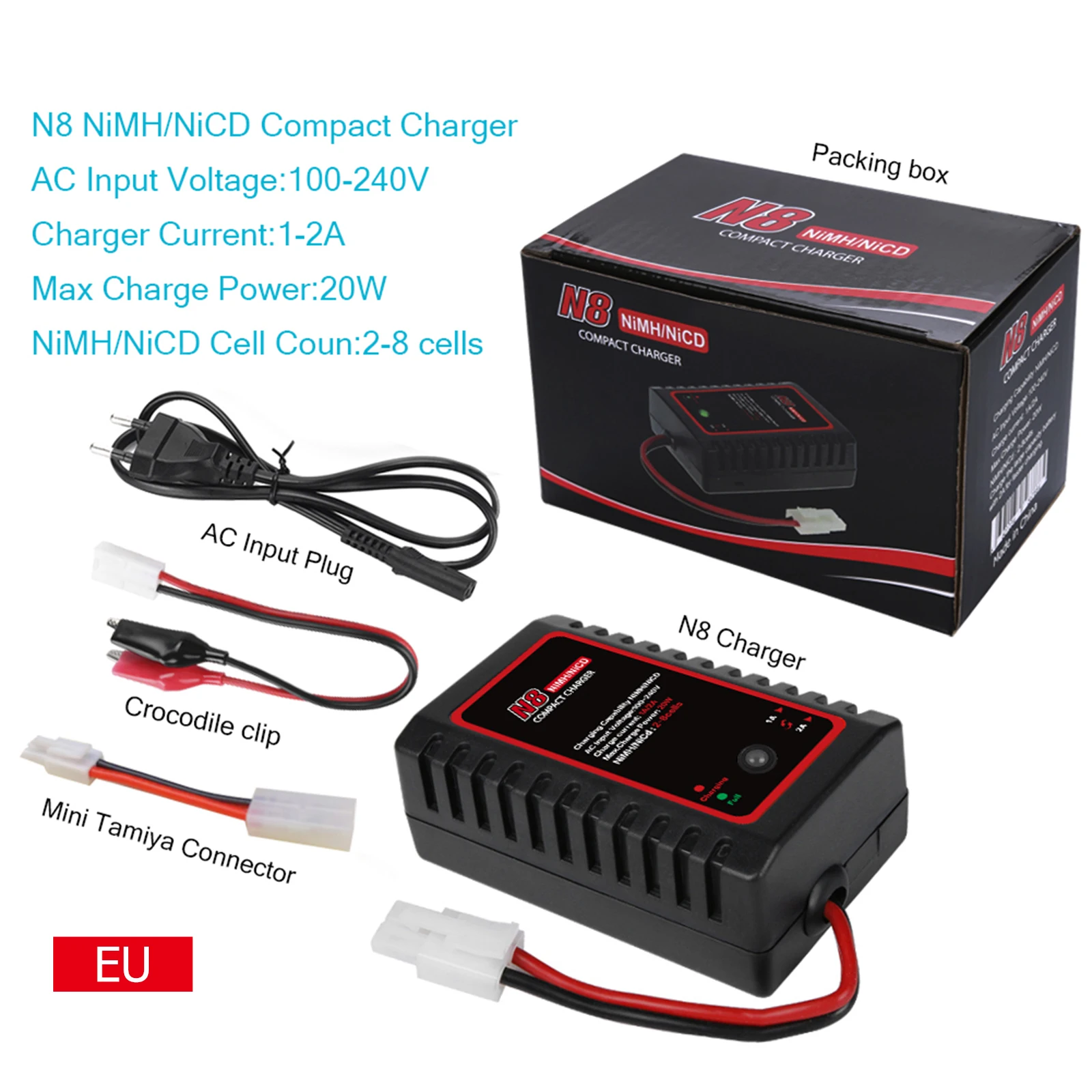 HTRC N8 110-240 В 2A 20 Вт AC 2-8S NiMH/NICD Компактное зарядное устройство для радиоуправляемых автомобилей Дрон модель лодки Аксессуары Черный