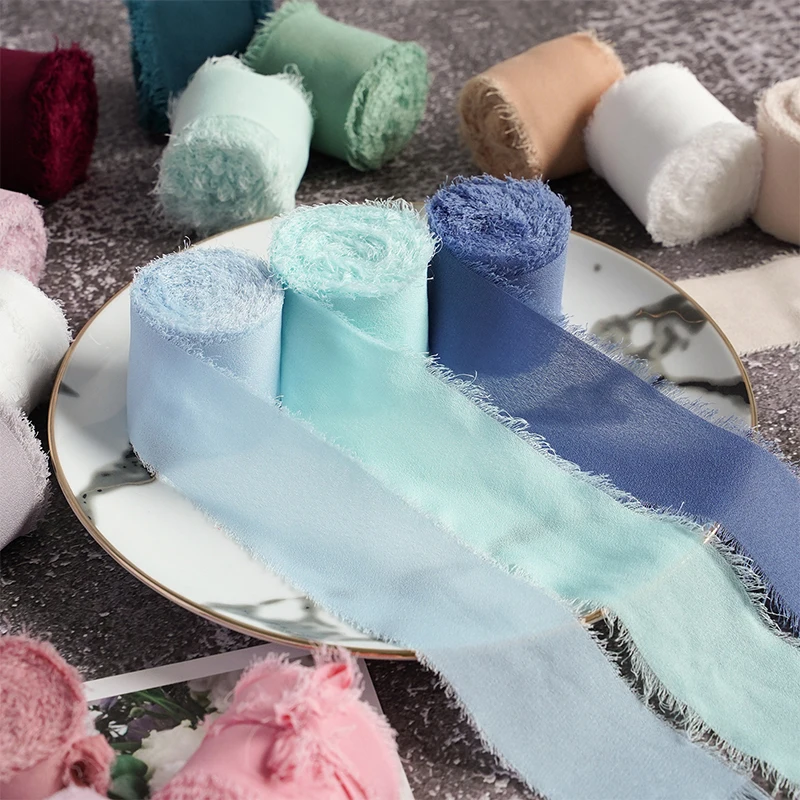 Потрепанная окантованная шифоновая шелковая лента ручной работы, рваная Свадебная Цветочная обертка для букета, украшение, пригласительный декоративный реквизит на плоской подошве