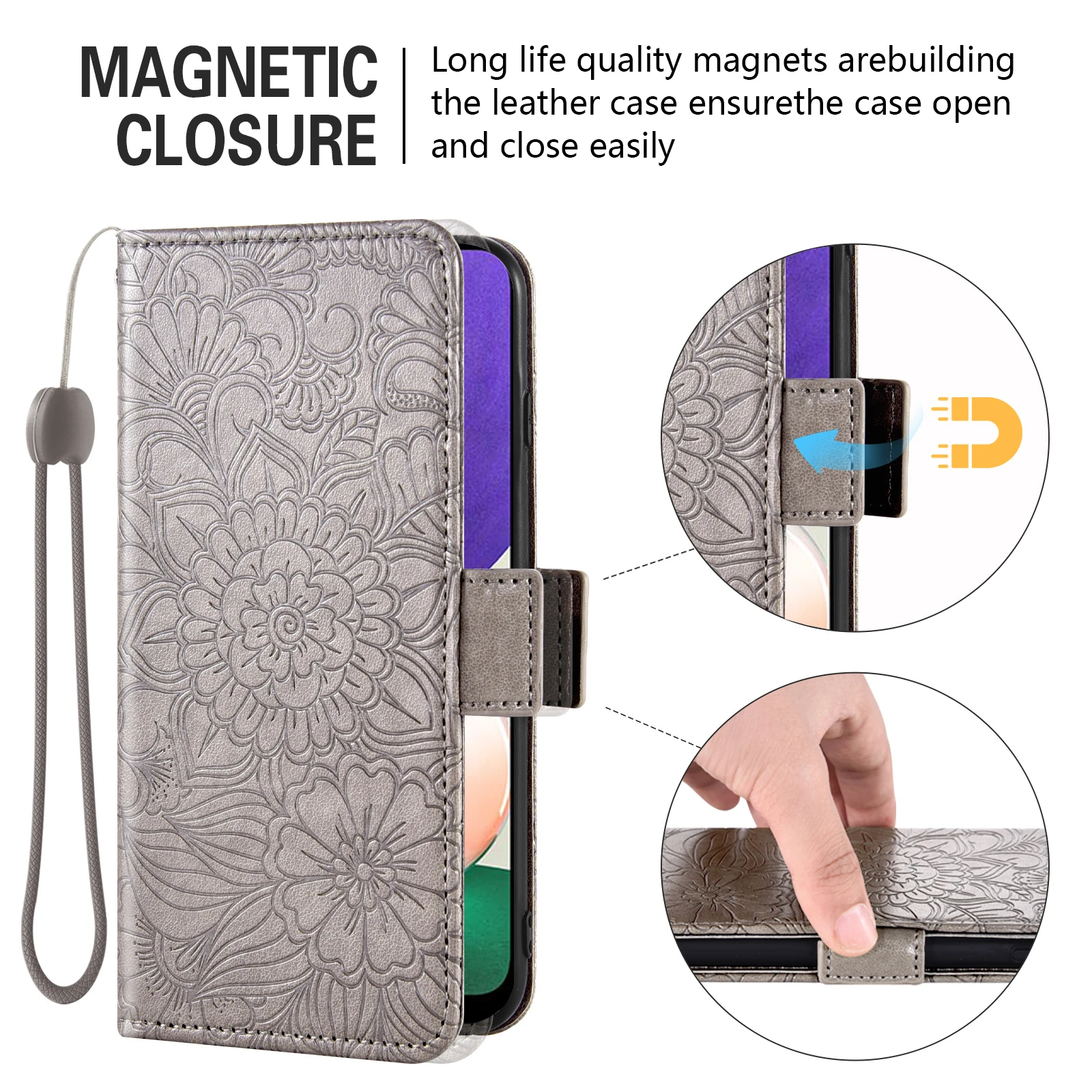 5.Магнитная застежка-клапан: Супер сильное магнитное крепление, держите телефон более безопасным, безопасным, удобным и плотно прилегающим.