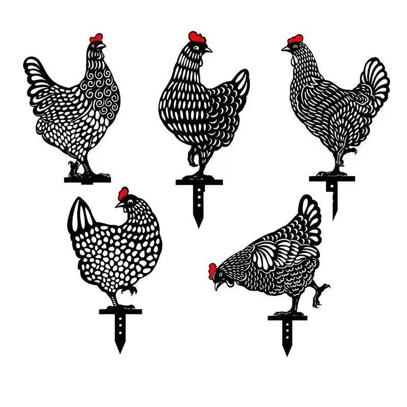 Товар: курица 5 двор садовые украшения, размером примерно 6x10 дюймов/15x25 см, с перьями, глаз и клюв детали для дав волю своему воображению, и придавать жизнь вашего сада