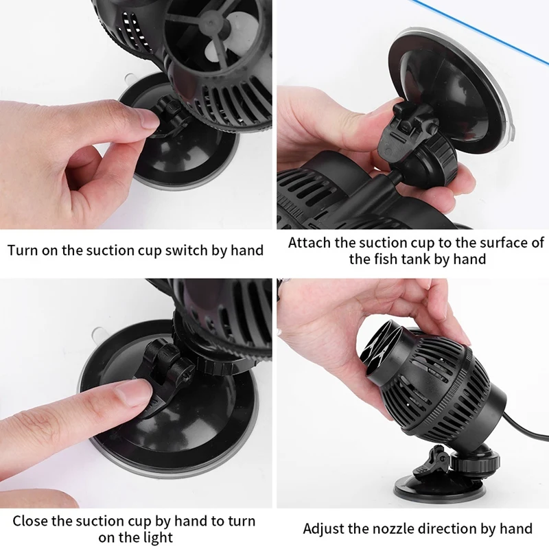 Простая установка: легко установить, насос может быть установлен практически в любом месте в аквариуме. Регулируемые кольца с нежными прорезями предотвращают попадание в них детской рыбы, кораллов и морской звезды. Головка вращается на 360 градусов, обеспечивая полный контроль над направлением потока воды, создавая естественное движение воды