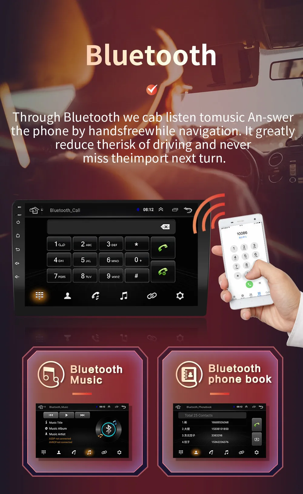 6. Поддержка: радиостанция, Bluetooth Вызов, Bluetooth музыка, управление рулевым колесом, встроенный WiFi, MP3, видео музыка (MPG, AVI), навигация, видеовыход, зеркальная связь, USB 4G LTE WIFI ключ и другие функции; Поддержка выбора логотипа автомобиля; Sfactory пароль: 8888