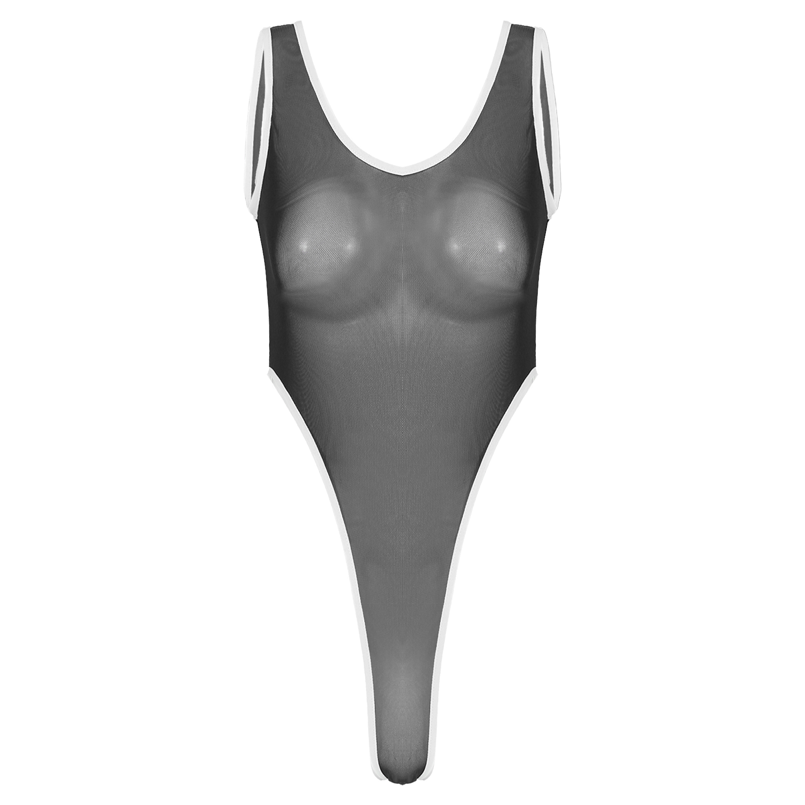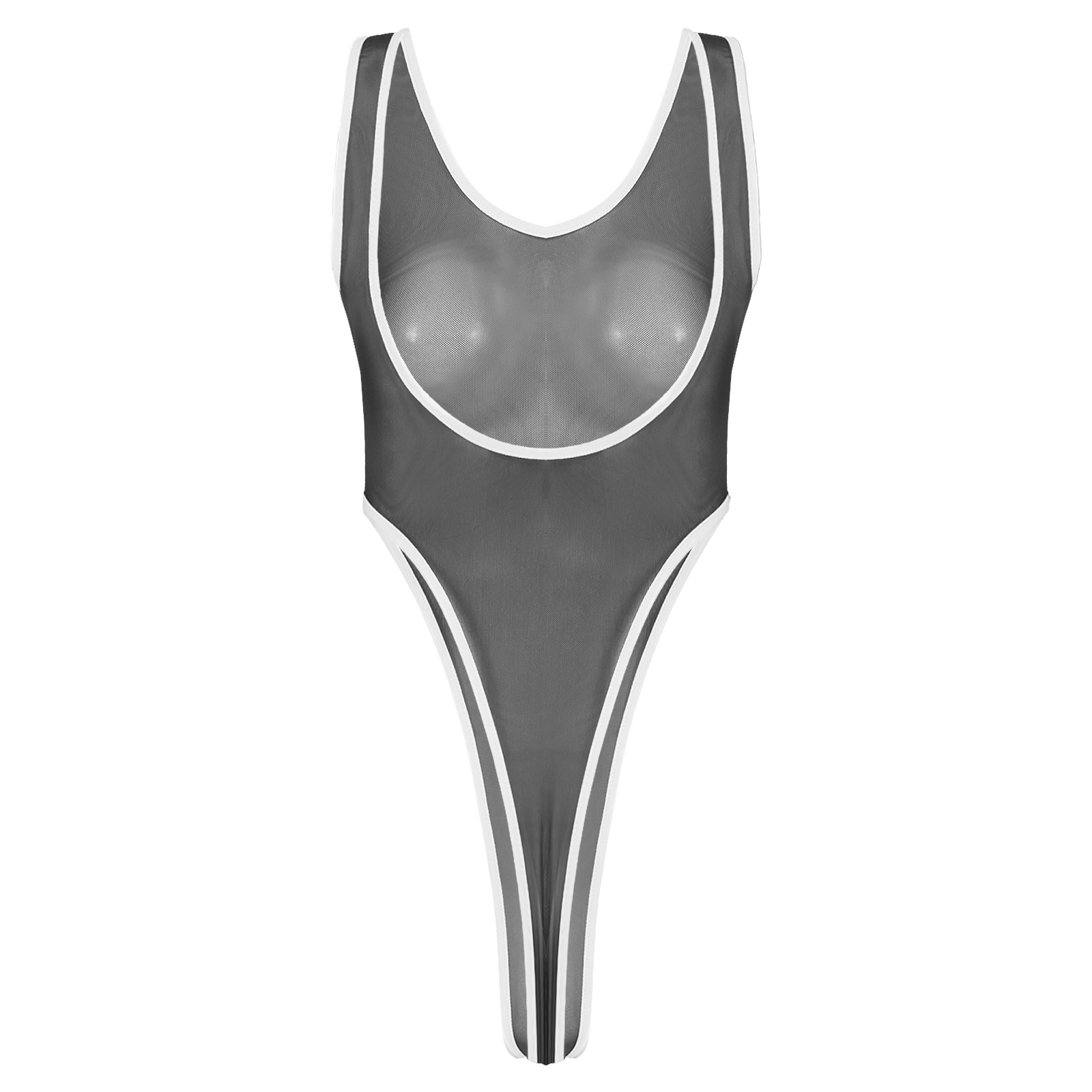 Женское прозрачное Сетчатое боди с глубоким вырезом и открытой спиной, монокини с высоким вырезом.
