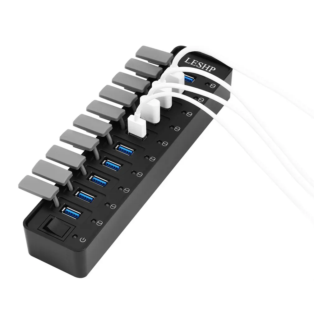 10 портов USB 3,0 концентратор Высокоскоростной 5 Гбит/с USB 3,0 концентратор данных разветвитель с светодиодный и переключатель внешний адаптер питания для ПК ноутбука США вилка