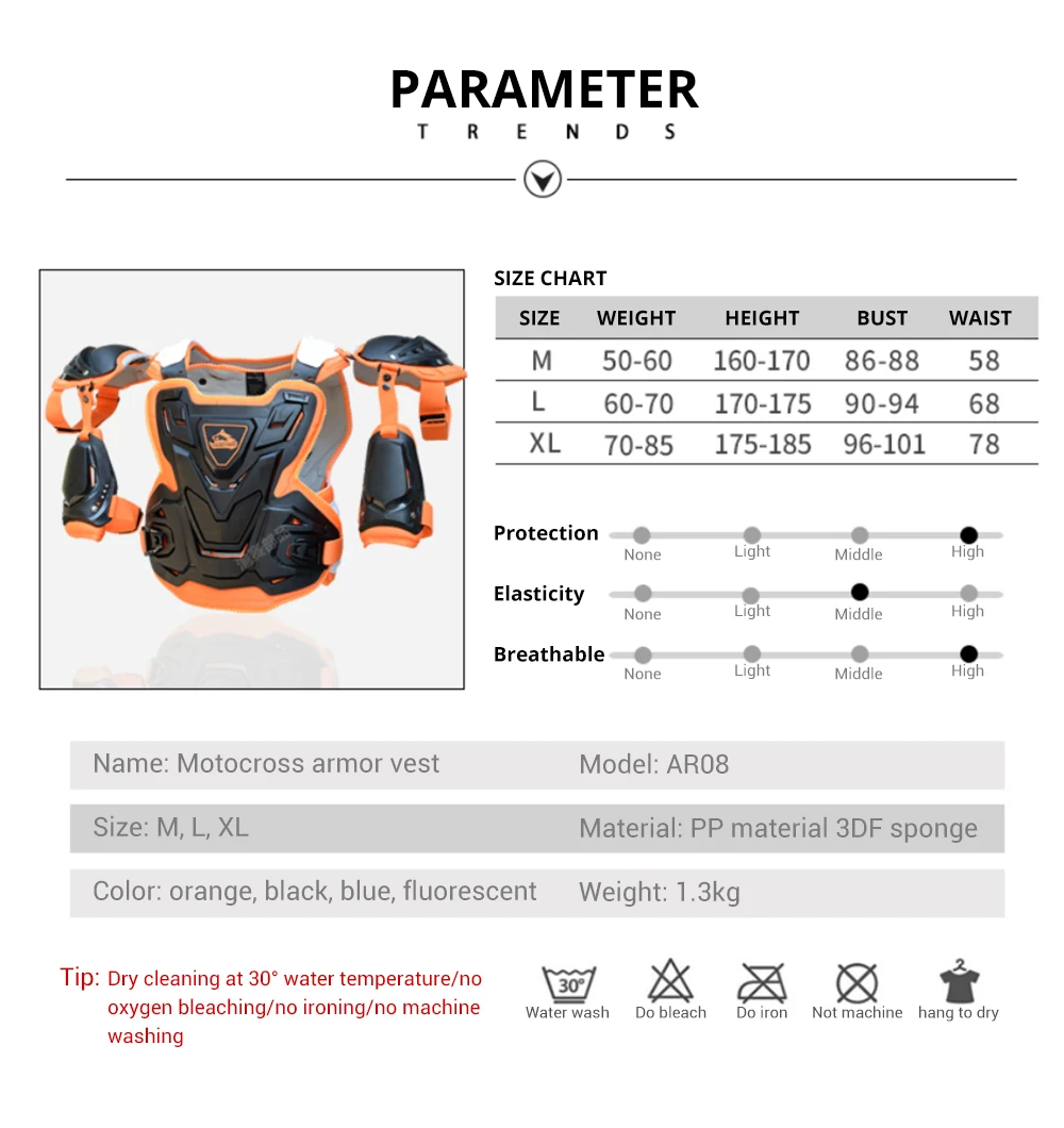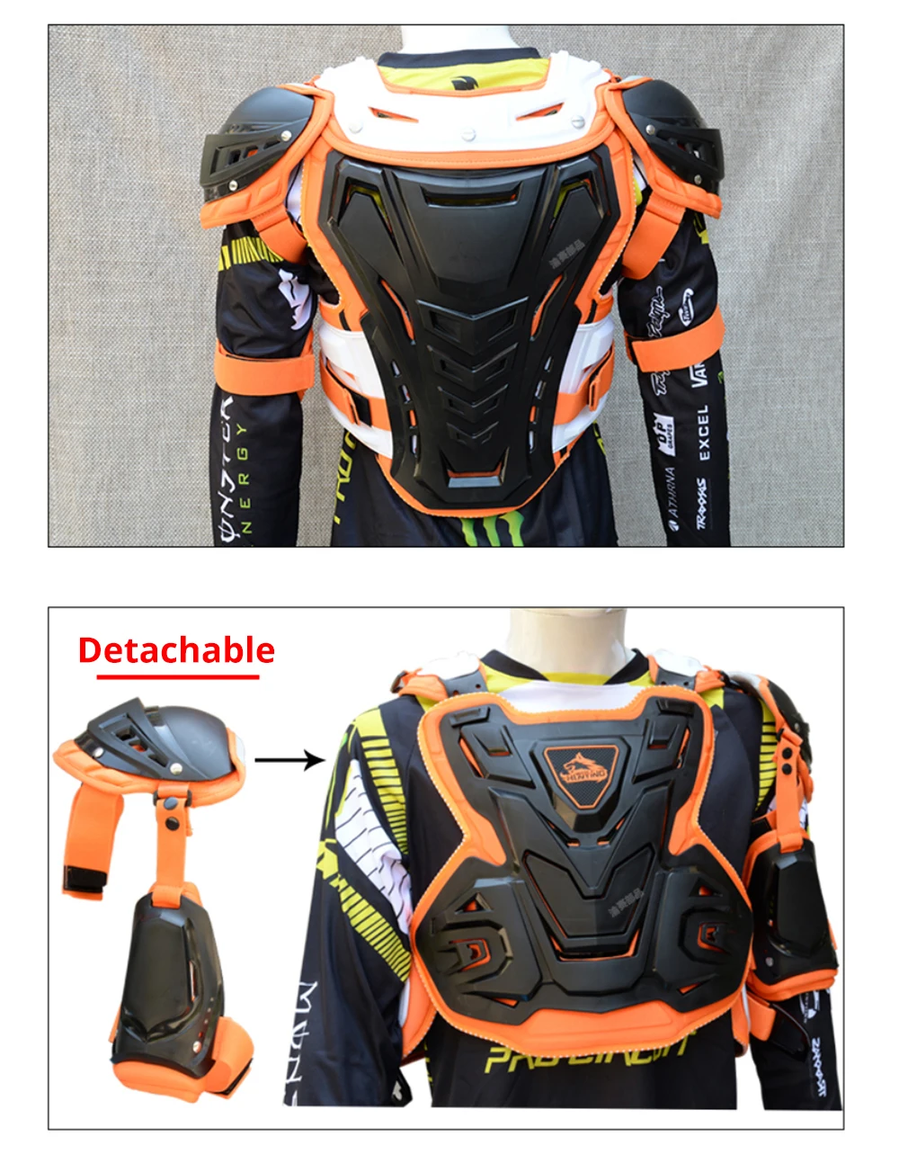 Если вы обычно едете на мотоцикле в течение длительного времени, вы должны выбрать этот вид защитного снаряжения, чтобы эффективно защитить себя во время езды. Защитная Броня изготовлена из утолщенного материала PP, что делает броню лучше защищающей тело, а плечевая оболочка отстегивается, все преимущества могут защитить вас во время езды. На самом деле, это необходимо для мотоциклистов. Это отличная Полная броня (задняя защита, плечевые чашки, налокотники, грудь)