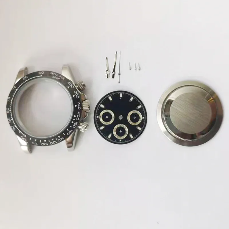 304 нержавеющая сталь 40 мм шестиконтактный чехол для кварцевых часов Набор стрелок с черным стальным ободком подходит для VK63/VK64