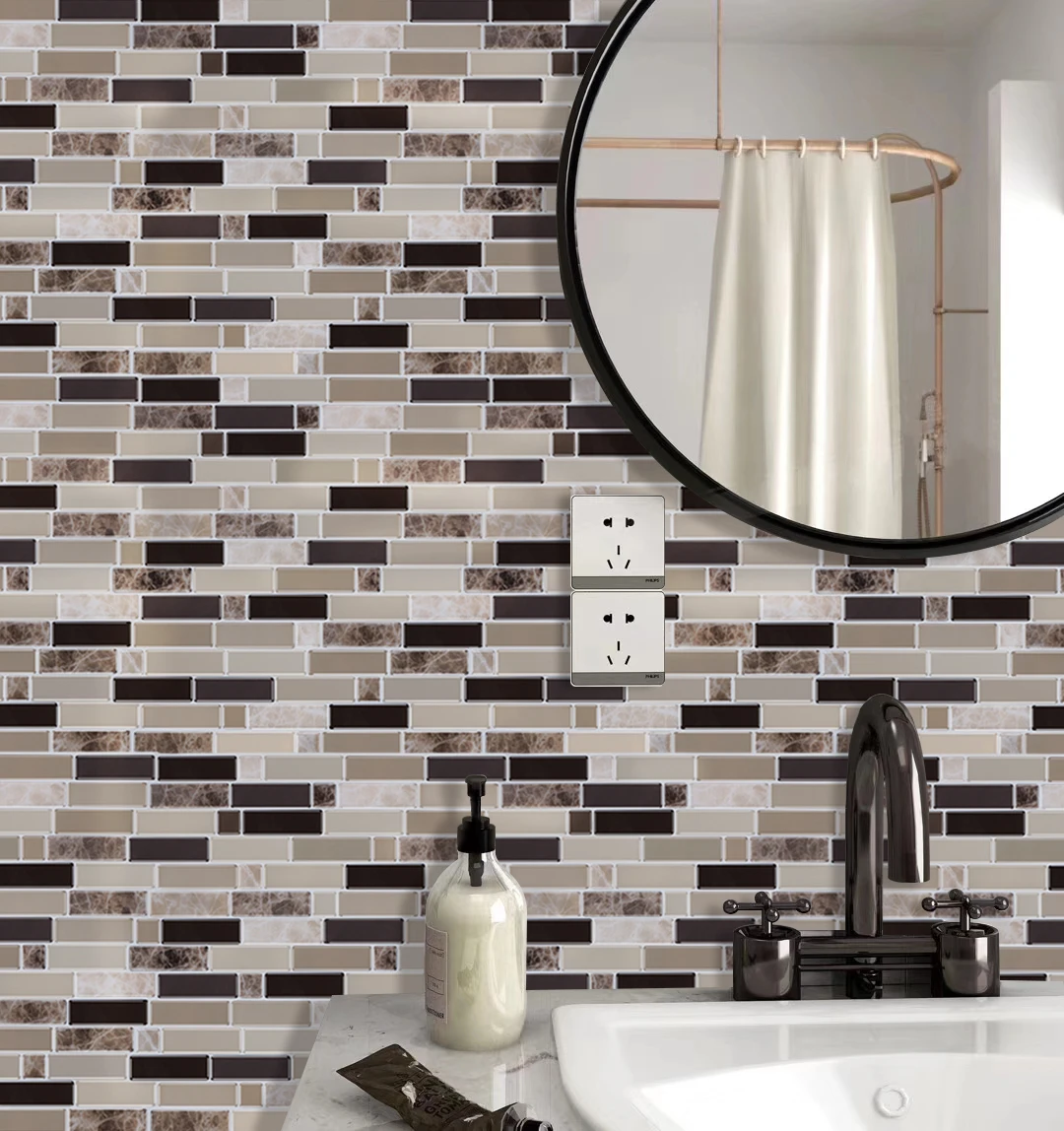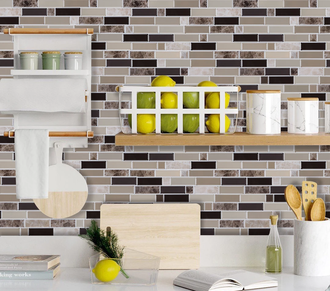 Пилинг и палочка могут быть обработаны на всех гладких, чистых и сухих поверхностях, таких как окрашенная гипсокартон или даже прямо над керамической плиткой. Просто очистить и приклеить, легко установить его. Все, что вам нужно, это линейка, карандаш, ткань и ножницы. Этот проект позволит вам сэкономить время и деньги по сравнению с реальной плиткой. И не стоит беспокоиться, что плитка не подходит к размеру Вашей стены, так как ее легко резать.