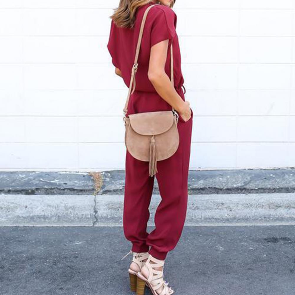 Благодаря однотонному дизайну, этот женский комбинезон очень легко сочетается с обувью. Свободный дизайн позволит вам чувствовать себя очень комфортно.