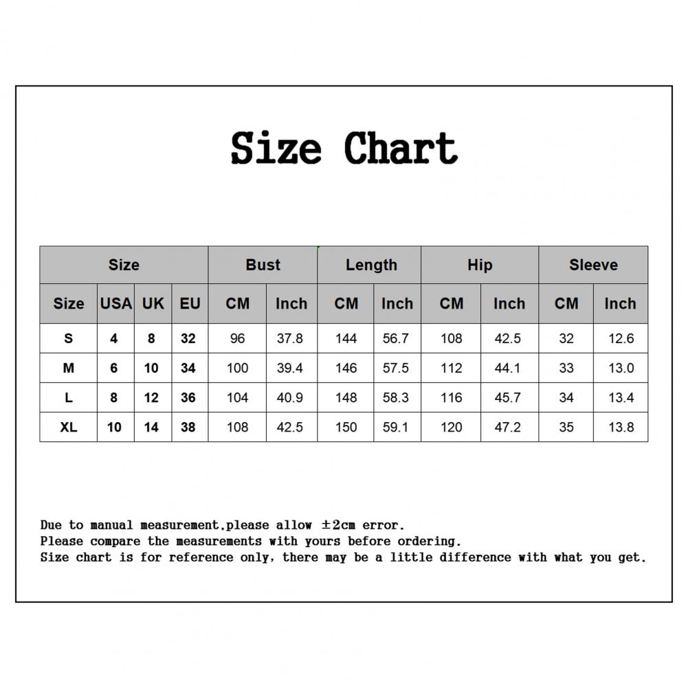 Размеры: S, обхват бедер: 96 см/37,8 ", Длина: 144 см/56,7", рукав: 32 см/12,6 ", обхват бедер: 108 см/42,5" (прибл.)