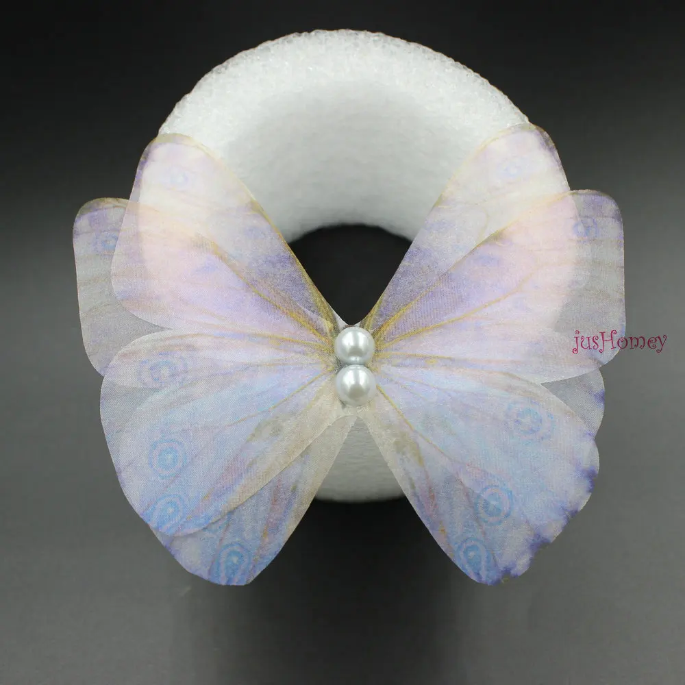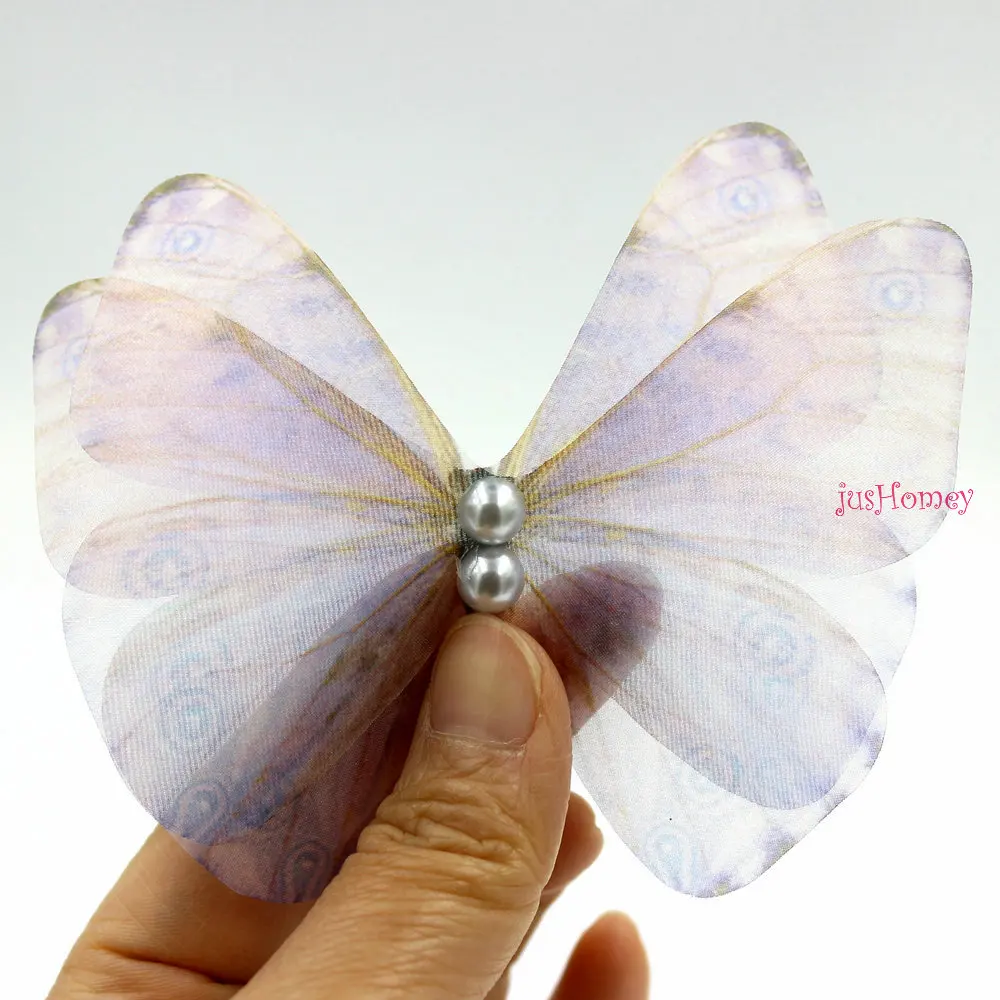 20 шт. градиентный цвет органза ткань серый синий бабочка аппликации 10 см полупрозрачные шифоновые бабочки для вечерние украшения, кукольные украшения