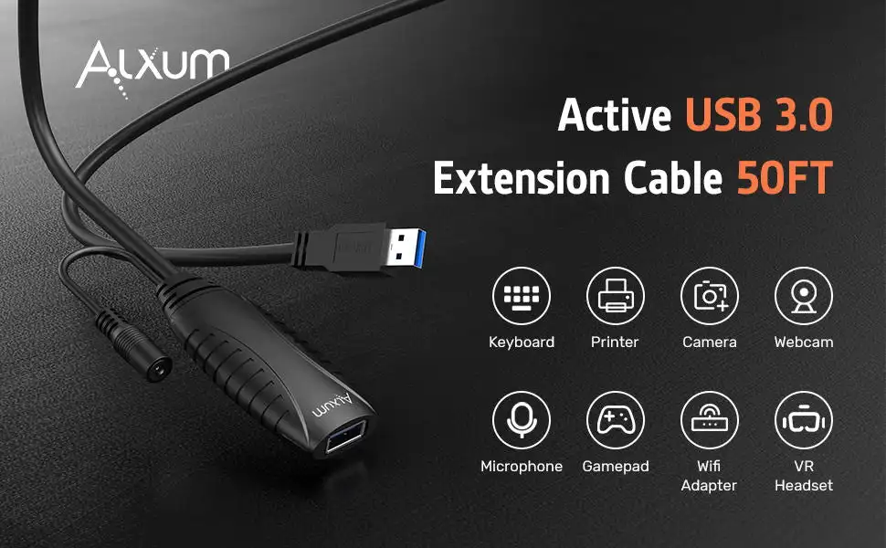 Alxum USB 3,0 активный Удлинительный кабель особенно удлиняет расстояние для безопасности камеры, веб-камеры, принтера, сканера, микрофона, WiFiAntenna, телескопа, VR, Xbox, любые usb-устройства и внутренний и наружный Удлинительный шнур обычно используются на собраниях компаний, школьных речевых конкурсах, драмах, выставочных залах и т. д.