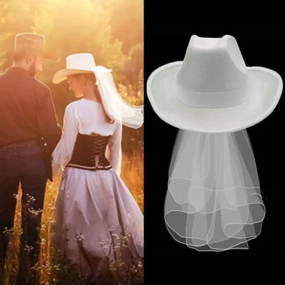 Элегантная белая ковбойская шляпа для женщин, ковбойская шляпа с вуалью, Свадебный костюм для невесты, реквизит, летняя уличная женская шляпа, ковбойская шляпа
