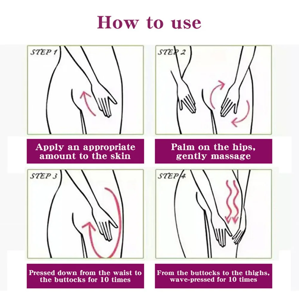 * 3. Массаж в течение 1-3 минут после нанесения до полного впитывания. Этот процесс усилит кожу и мышцы вокруг бедер и сделает ваши бедра более твердыми, полными, большими и естественными.