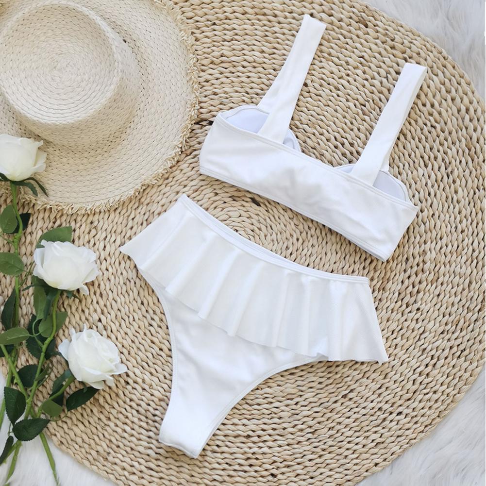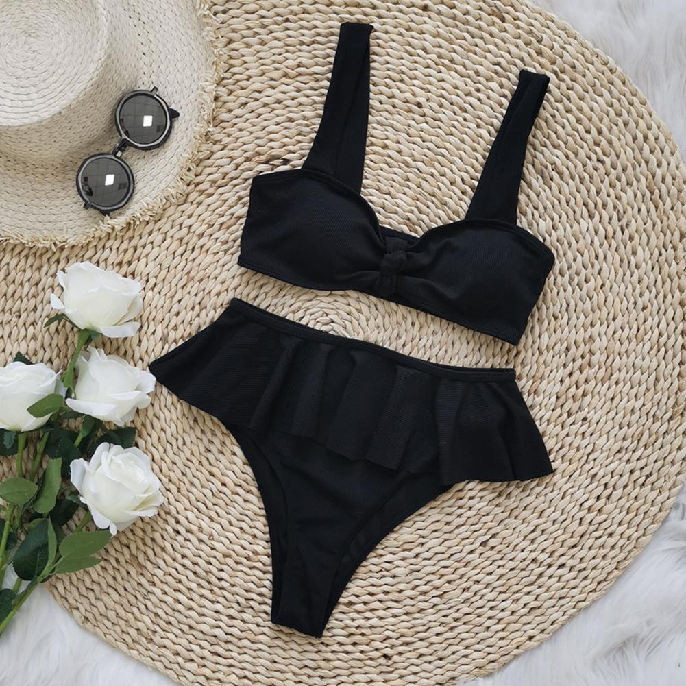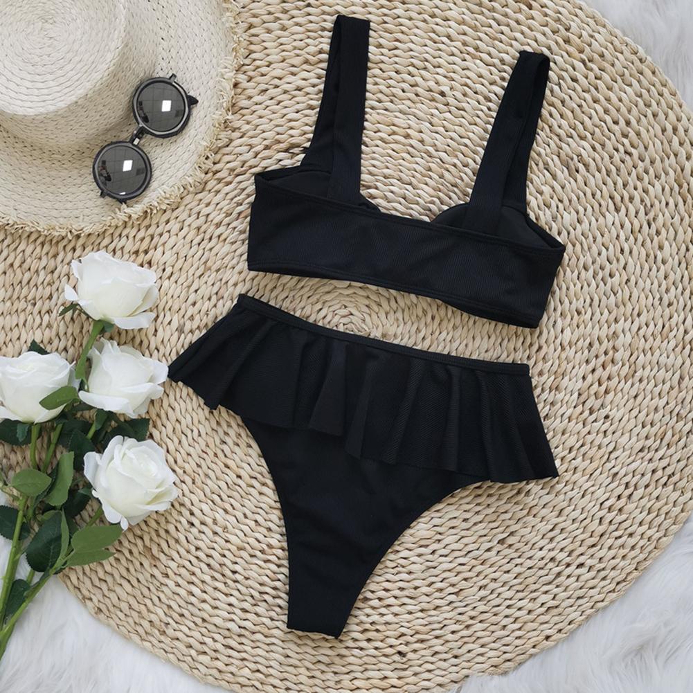 Дизайн с завышенной талией и гофрированным подолом делает бикини пуш-ап более модным, что подчеркивает вашу сексуальную и стройную ногу.