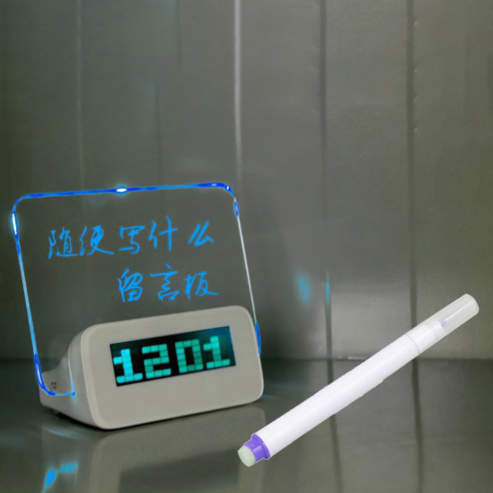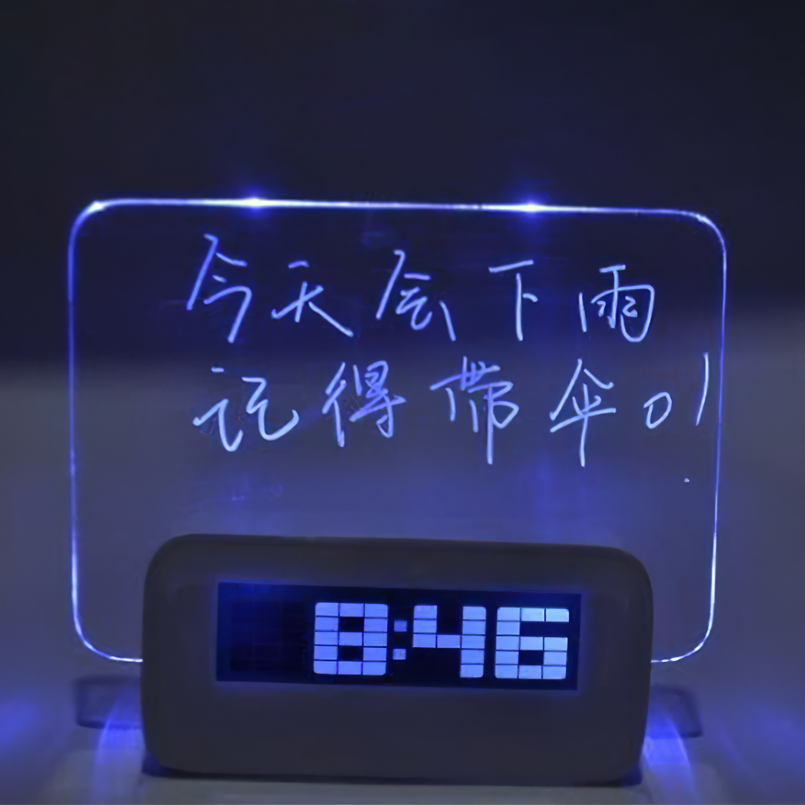Будильник оснащен акриловой доской сообщений, вы можете оставить сообщения своим близким и близким.