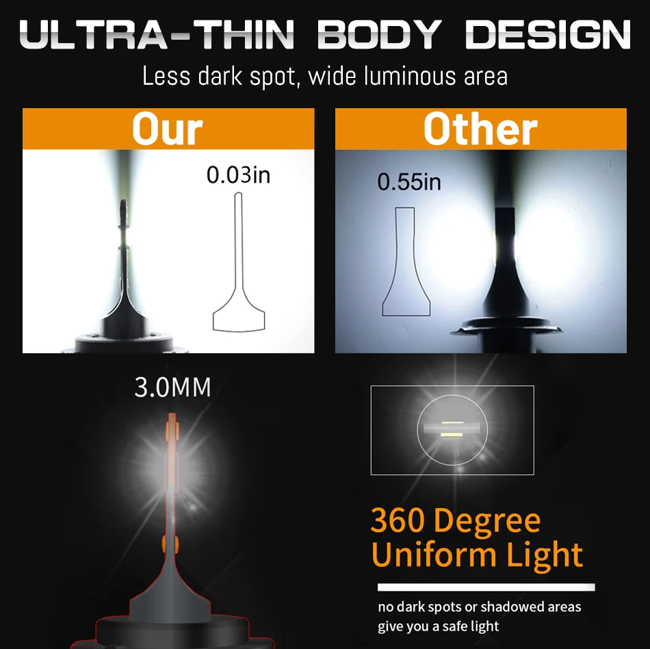 * Количество: 2 шт. * Тип чипа: чипы CSP * Цветовая температура: 6000K белый * Люмен: 25 лм/пара * Рабочее напряжение: 9-16 В постоянного тока * Мощность: 120 Вт/комплект * Степень водонепроницаемости: IP 68 • Срок службы:> 30000 часов * Гарантия: 2 года