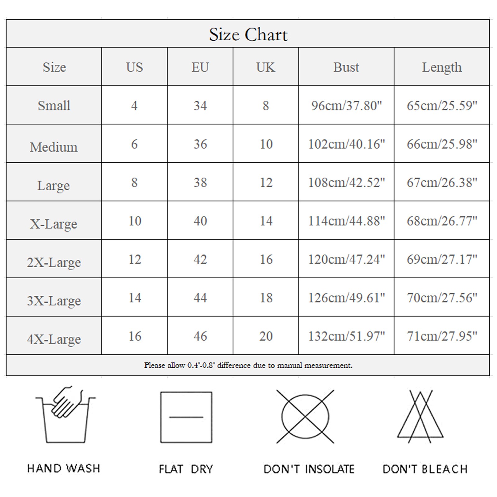 Размеры США ЕС Великобритания Бюст Длина S 4 34 8 96 см/37,80'' 65 см/25,59'' М 6 36 10 102 см/40,16'' 66 см/25,98'' L 8 38 12 108 см/42,52'' 67 см/26,38'' XL 10 40 14 114 см/44,88'' 68 см/26,77'' XXL 12 42 16 120 см/47,24'' 69 см/27,17'' XХХL 14 44 18 126 см/49,61'' 70 см/27,56'' XXXXL 16 46 20 132 см/51,97'' 71 см/27,95''Понравился дизайн свитера, решила заказать, товар пришел быстро, цвет и размер подошёл. Все как на фото. Доставка не дала долго... Читать отзыв полностью...