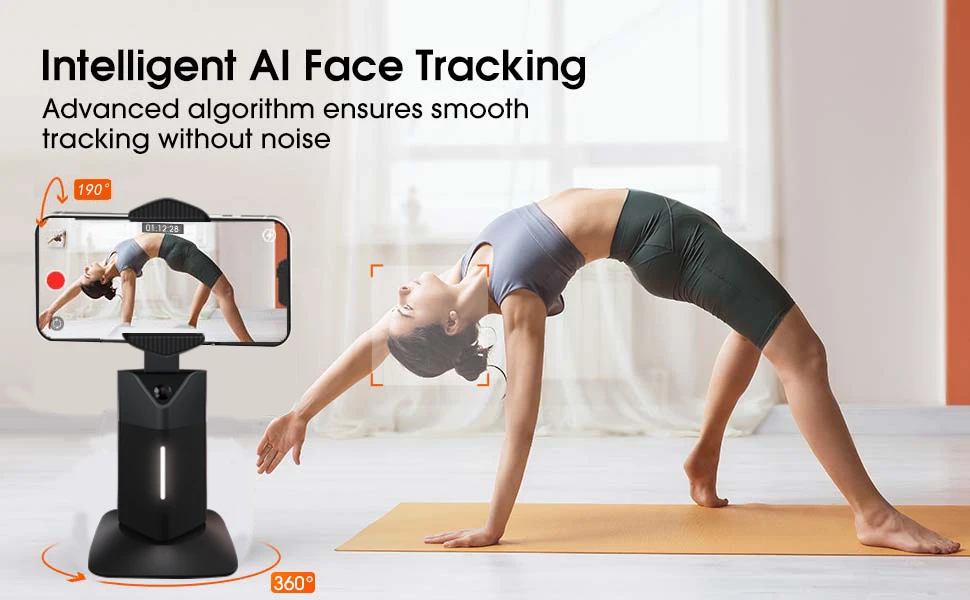 Приложение не требуется: с встроенной камерой, этот держатель для телефона для отслеживания лица может отслеживать вас автоматически, вам не нужно загружать приложение или подключаться к Bluetooth, очень прост в использовании и лучше защищает вашу конфиденциальность