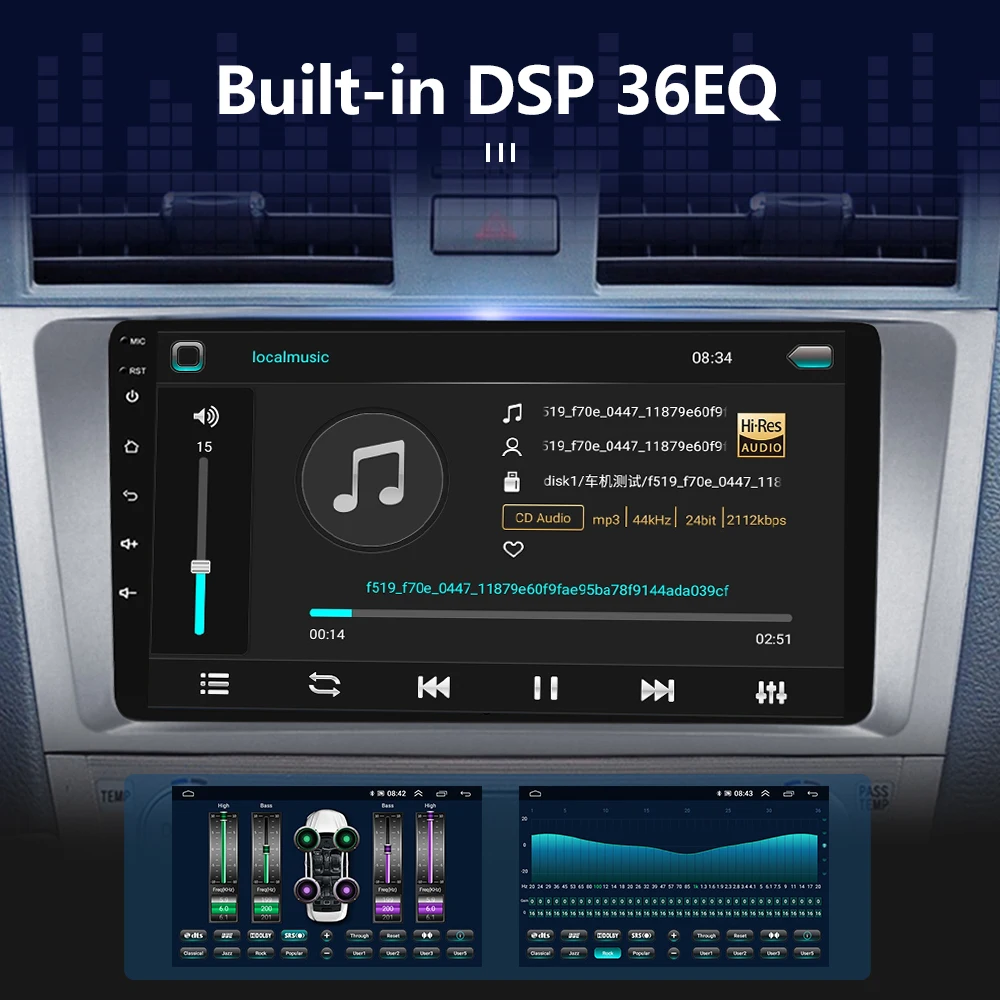 Автомобильный dsp настройка программного обеспечения, используя DSP технологии настройки, вы можете настроить частоту, AE, 36-полосным эквалайзером, Доставка в течение 10-полосным эквалайзером, И выбор типа звука в приложении, чтобы компенсировать отсутствие оригинальных автомобильных динамиков и получить лучшее качество звука без потерь.