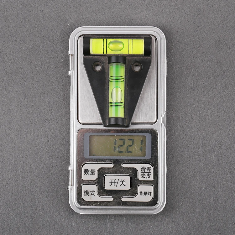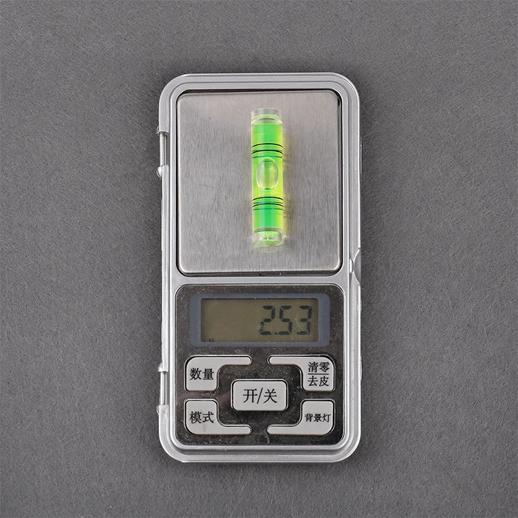 1. Цилиндрический инструмент уровня пузырьковПрименимость: Измерьте ту же горизонтальную линию многоосевого моторного основания, чтобы сделать четыре оси более стабильными.Параметры: длина 40 мм Диаметр 9,5 ммПреимущество дешево, но недостатком является то, что круговая столбчатая форма не легко исправить.