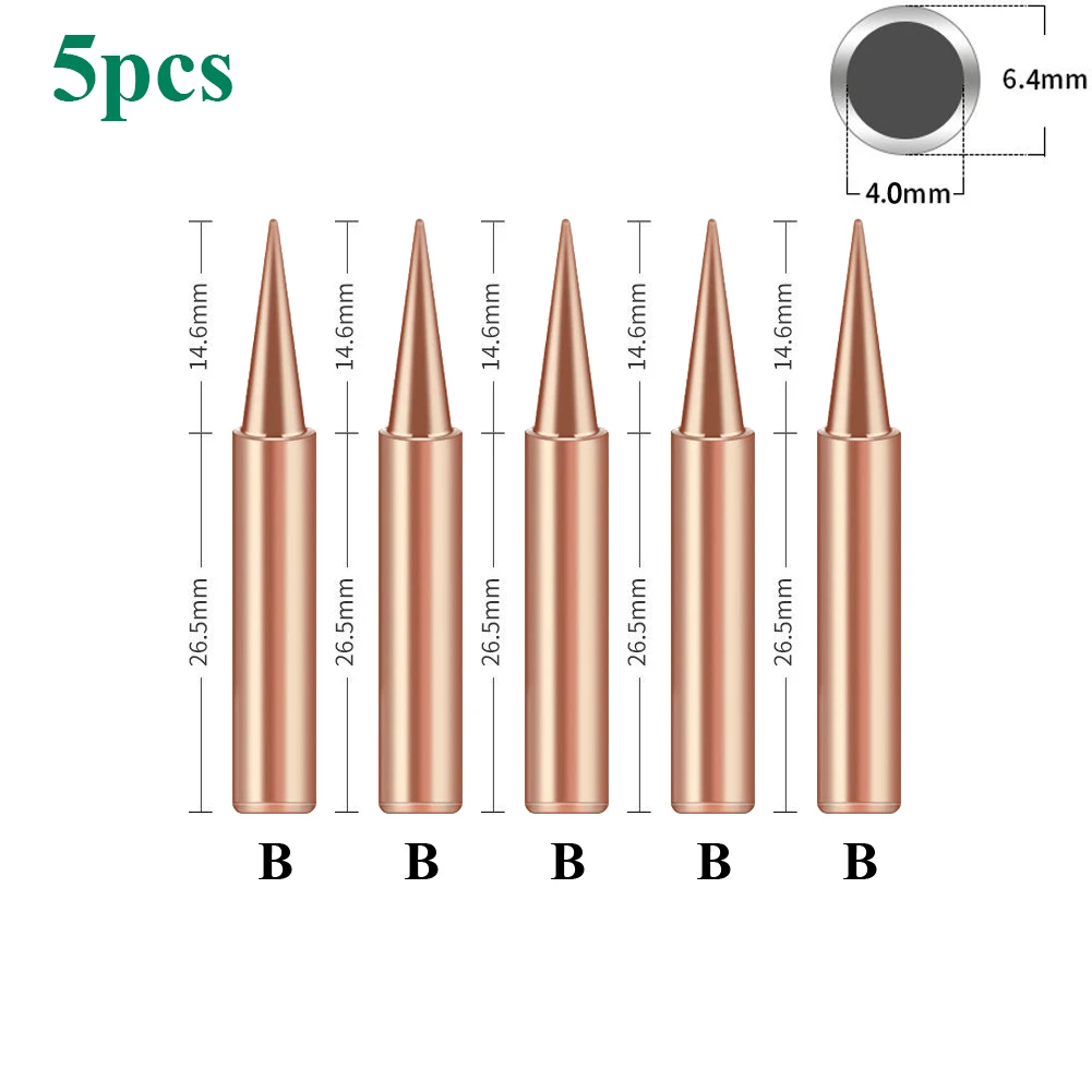 В этом наборе 5 типов наконечников для паяльника. Вы можете выбрать правильный наконечник паяльника в соответствии с различными потребностями пайки.