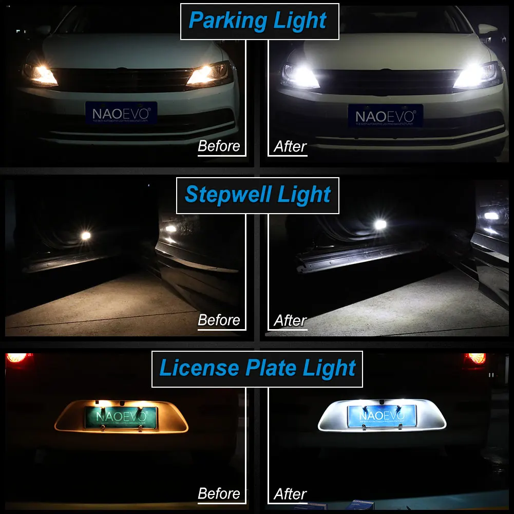 Подсветка номерного знака, подсветка салона, Купольные огни, подсветка карты, габаритные огни, задние фонари и т. Д.