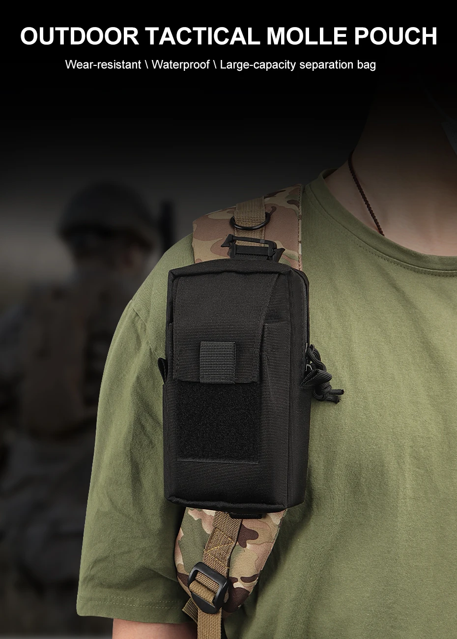 2. Система Molle. Сзади три ремня molle удобны для вас, чтобы повесить его на тактический ремень, тактический жилет, рюкзаки в качестве дополнительного аксессуара.