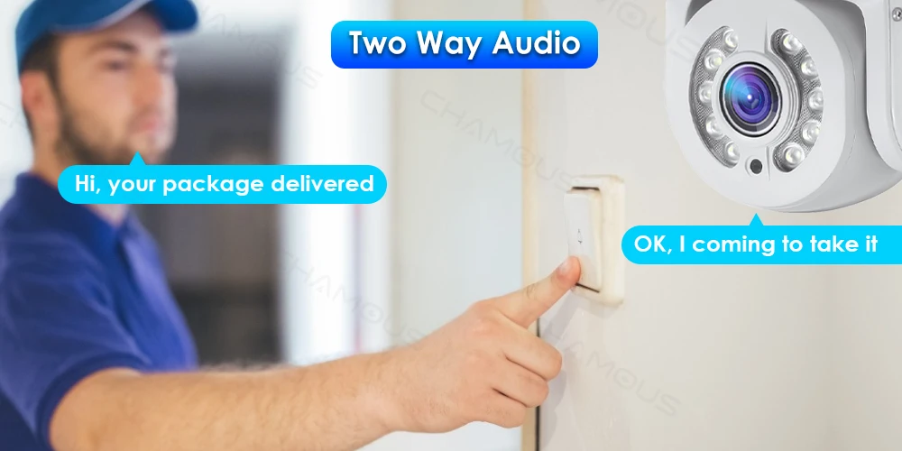 * Встроенный микрофон и динамик, поддерживает видео в реальном времени, что позволяет вам общаться с вашим посетителем в реальном времени, где бы вы ни находились.