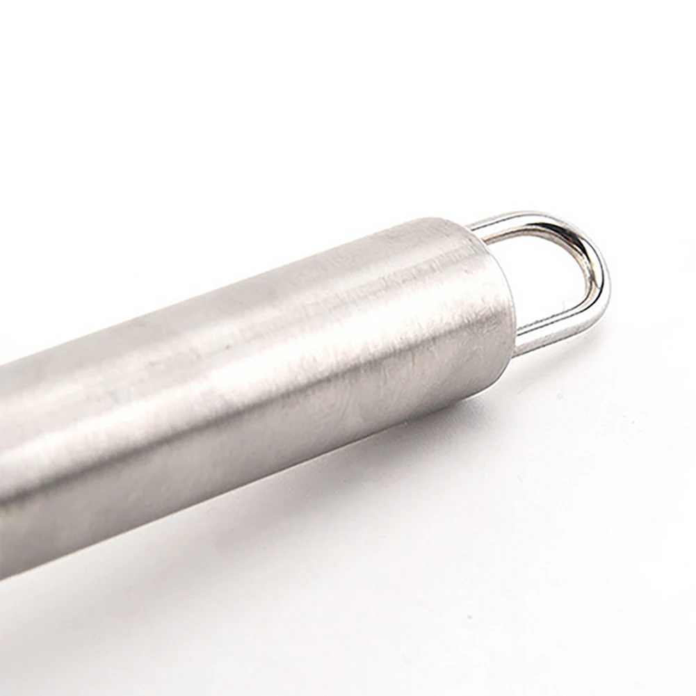 Эргономичная ручка для комфорта: ручка хорошо сбалансирована и эргономична для комфортного и плавного использования при тяжелом использовании. Поставляется с полным крючком в конце ручки для подвешивания хранения. Большие зазоры между металлическими каркасами делают резку проще и позволяют пюре выйти из зазора.