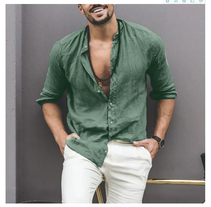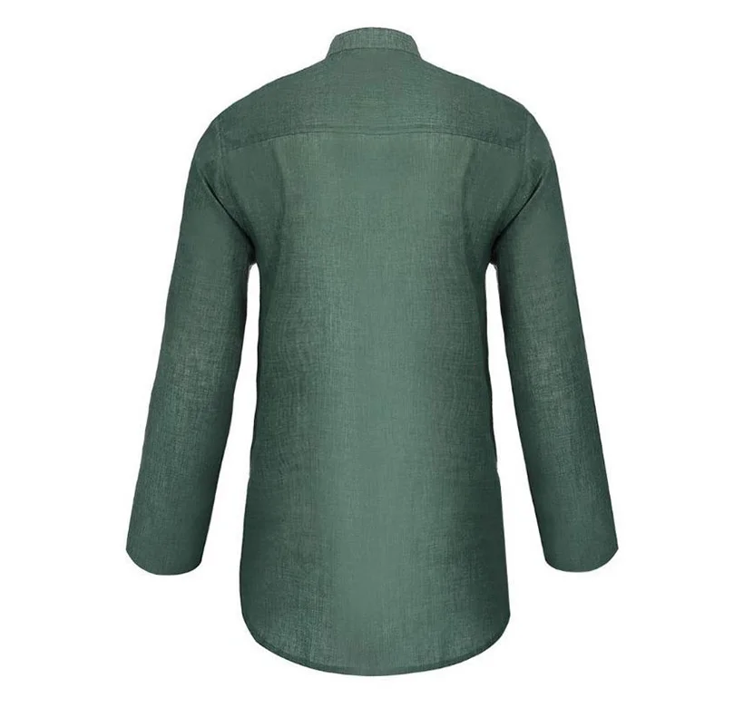 Весенне-летняя Однотонная рубашка для мужчин из хлопка и льна с длинным рукавом и воротником-стойкой, повседневная верхняя одежда, оптовая продажа, дешево 2022