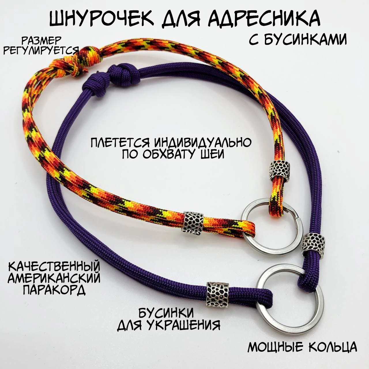 На адресник установлено два заводных кольца. Во избежание потери адресника, просим Вас периодически или перед выходом на прогулку проверять их на отсутствие разгибов, щелей или иных видов поломки. При обнаружении таковых, обязательно замените на новое кольцо или карабин! В противном случае Вы потеряете незаменимое украшение любимца!