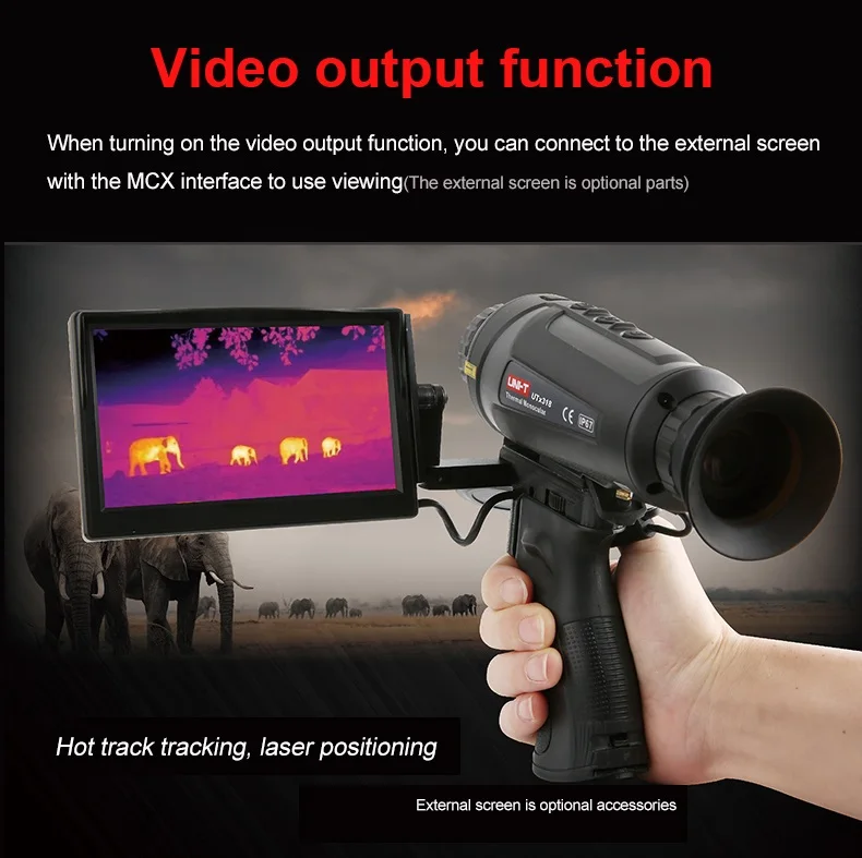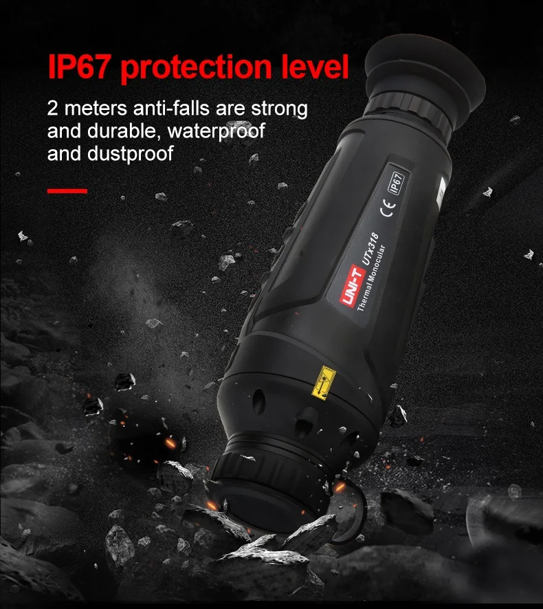 UTx318 легкий и портативный тепловизионный телескоп, который интегрирует инфракрасное тепловизионное изображение и дальнее обнаружение. Частота кадров 50 Гц позволяет вам наблюдать за движущимися предметами, не застревая. Хранение фотографий и подключение к внешнему экрану для просмотра, корпус IP67 пылезащитный и водонепроницаемый, и это отличное "острое оружие" для наблюдения на открытом воздухе, кемпинга, поиска, безопасности, И морских перевозок