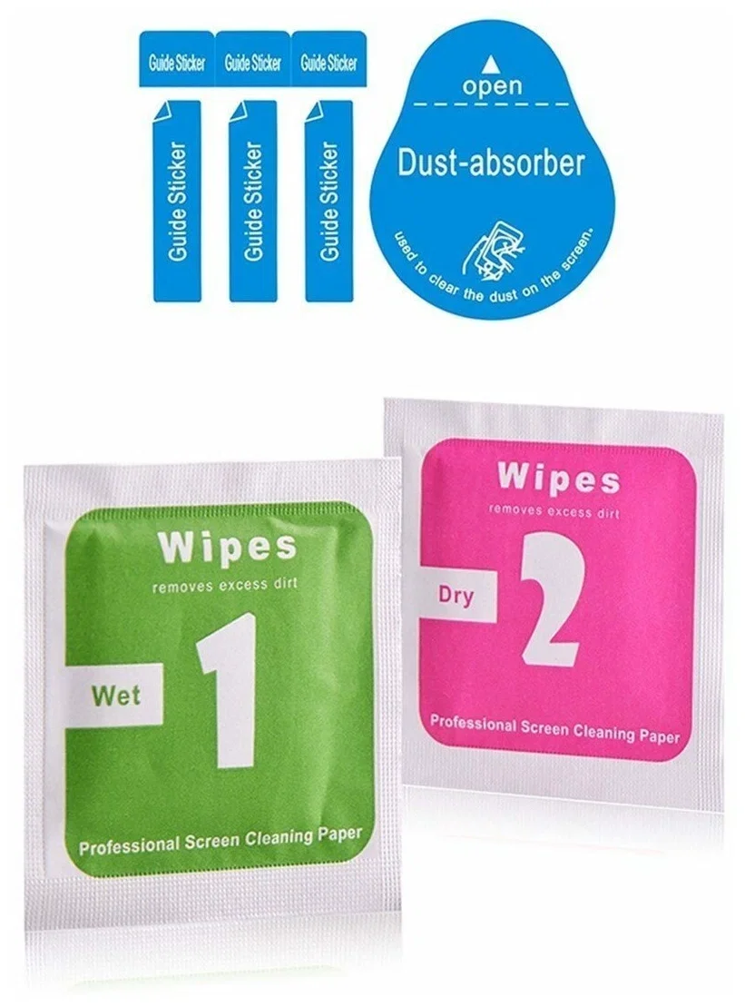 Установка стекла максимально простая: для этого в комплекте с каждым стеклом вложены влажная и сухая салфетки, наклейка для удаления пыли. Достаточно расположить стекло ровно над экраном, провести пальцем по центру, и оно само приклеится к дисплею. Более подробную инструкцию по установке вы можете найти на упаковке товара.
