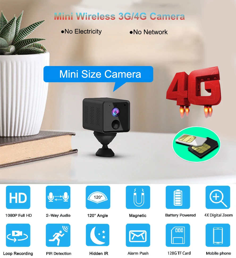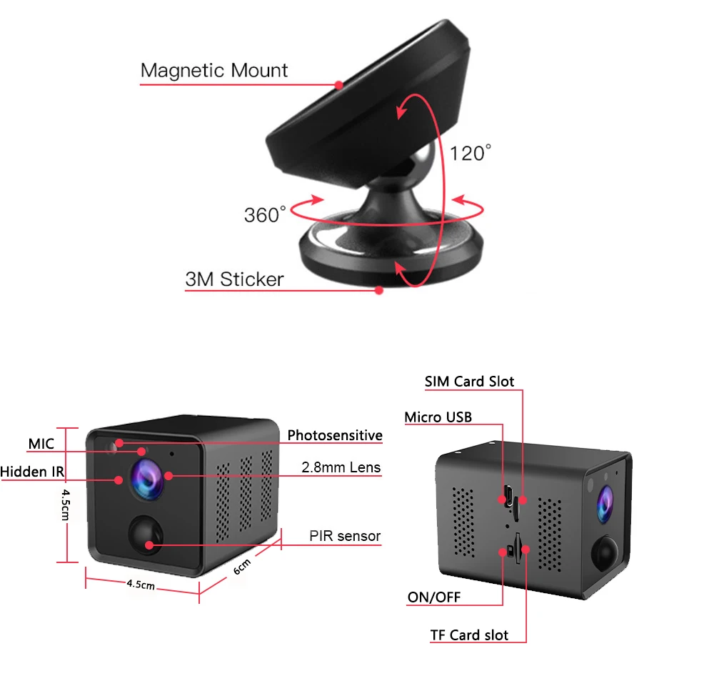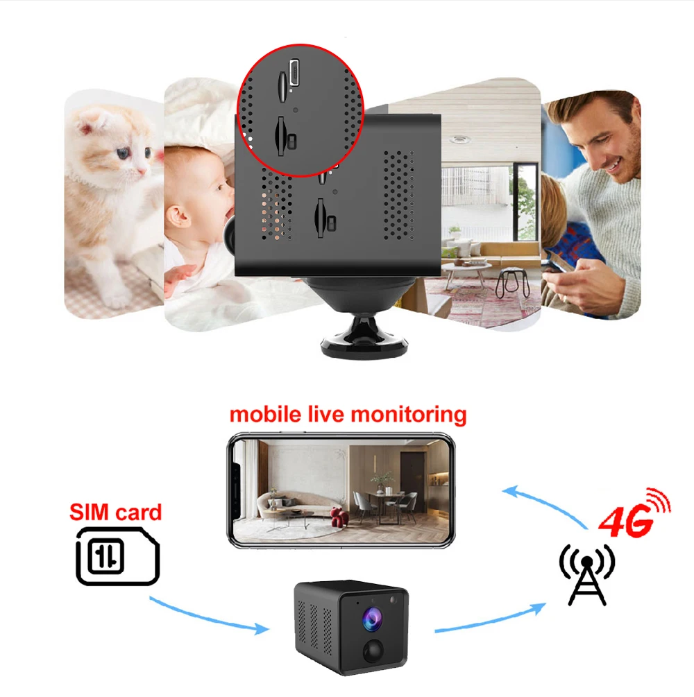 Беспроводной дома/автомобиль Mini Камера 4G 3G SIM 1080P без светильник Ночное видение Батарея Мощность Камеры Скрытого видеонаблюдения Камера обнаружения пассивного ИК-2-полосная аудио