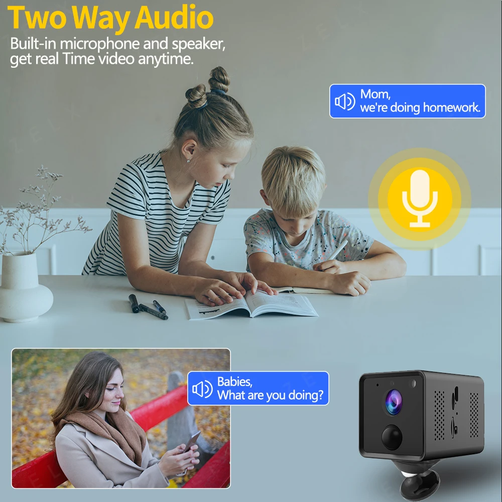 8. Четкие 2-полосная аудио: Слушайте и говорите через встроенный динамик и микрофон прямо с вашего смартфона. Вы можете поговорить со своими детьми, домашними животными или близкими из любой точки мира.