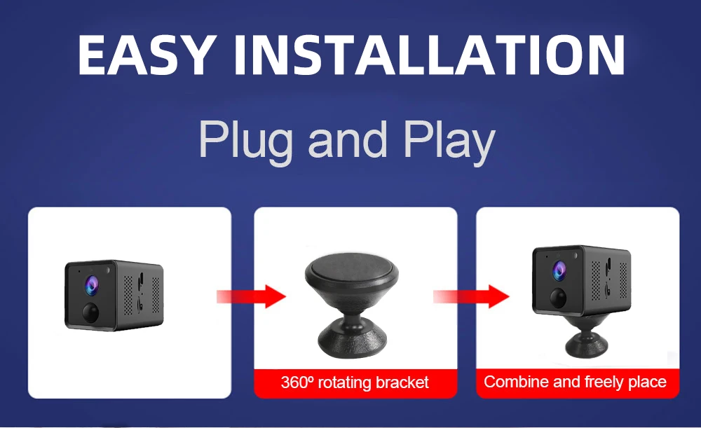 4. Мини-размер, встроенный большой аккумулятор 3200 мАч, 100% беспроводной. Простая установка с вращающимся на 360 ° магнитным основанием, просто поместите его куда угодно.