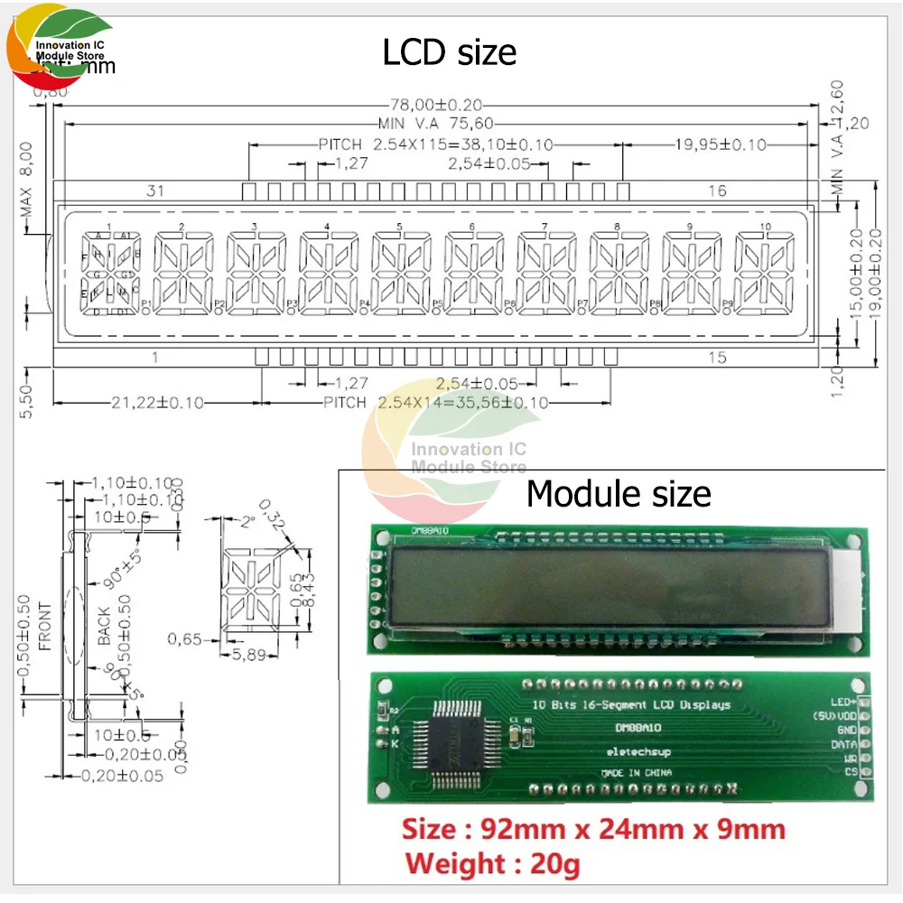 10-битная 16-сегмент SPI ЖК-дисплей дисплейный модуль