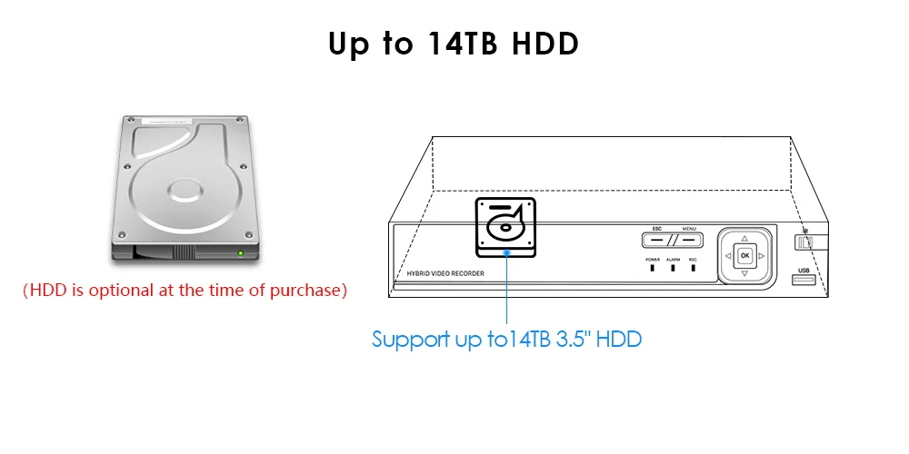 ● NVR с 1 SATA (до 14 ТБ для каждого диска);