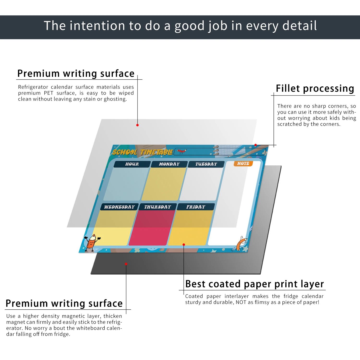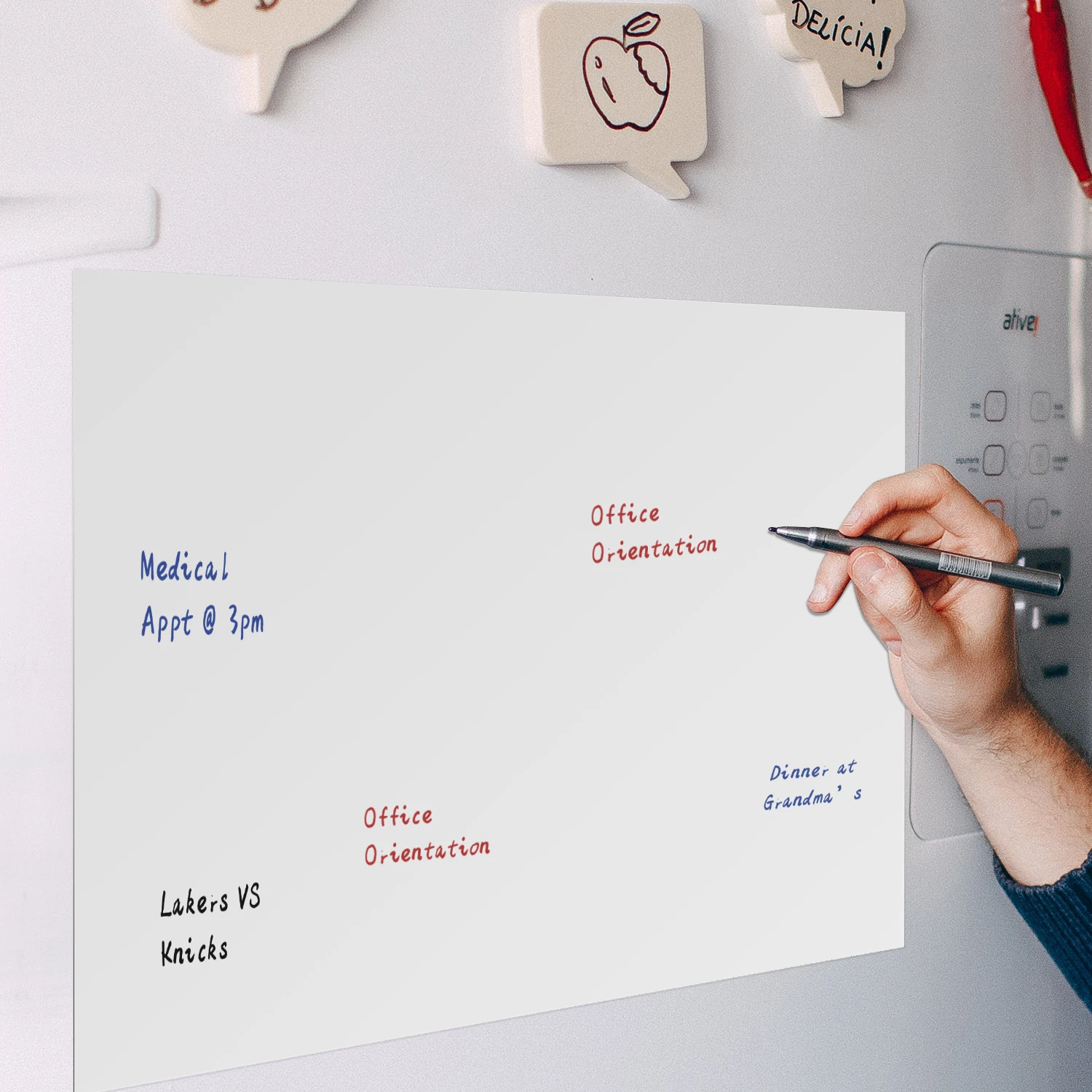 Премиум без скольжения магнитом: 0,5 мм толщиной магнитная доска для холодильника (белая) является водонепроницаемым и нервущийся, никаких пузырьков или складок, что может уменьшить умственную беспорядок и в то же время изменить внешний вид вашей кухни, добавить правильный штрих к заказу для тех ежедневных, еженедельных и ежемесячных ответственности, Приносит вам упорядоченную жизнь из года в год.