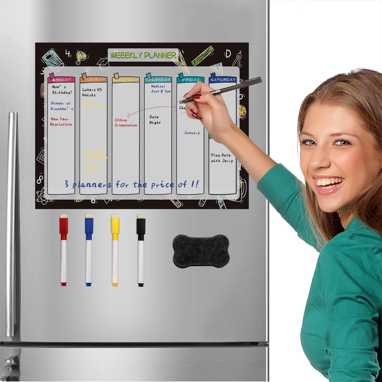 Подходит для большинства холодильников: Примечания (21X15 см) + еженедельные (42,5X30 см) + ежемесячные (42X30 см), этот ежемесячный и Еженедельный планировщик подходит для большинства холодильников мини или полноразмерных размеров, этот планировщик поможет вам организовать эти семейные мероприятия, списки продуктов, встречи и графики работы, используйте бонусный блокнот для обмена быстрыми нотами и напоминаниями.