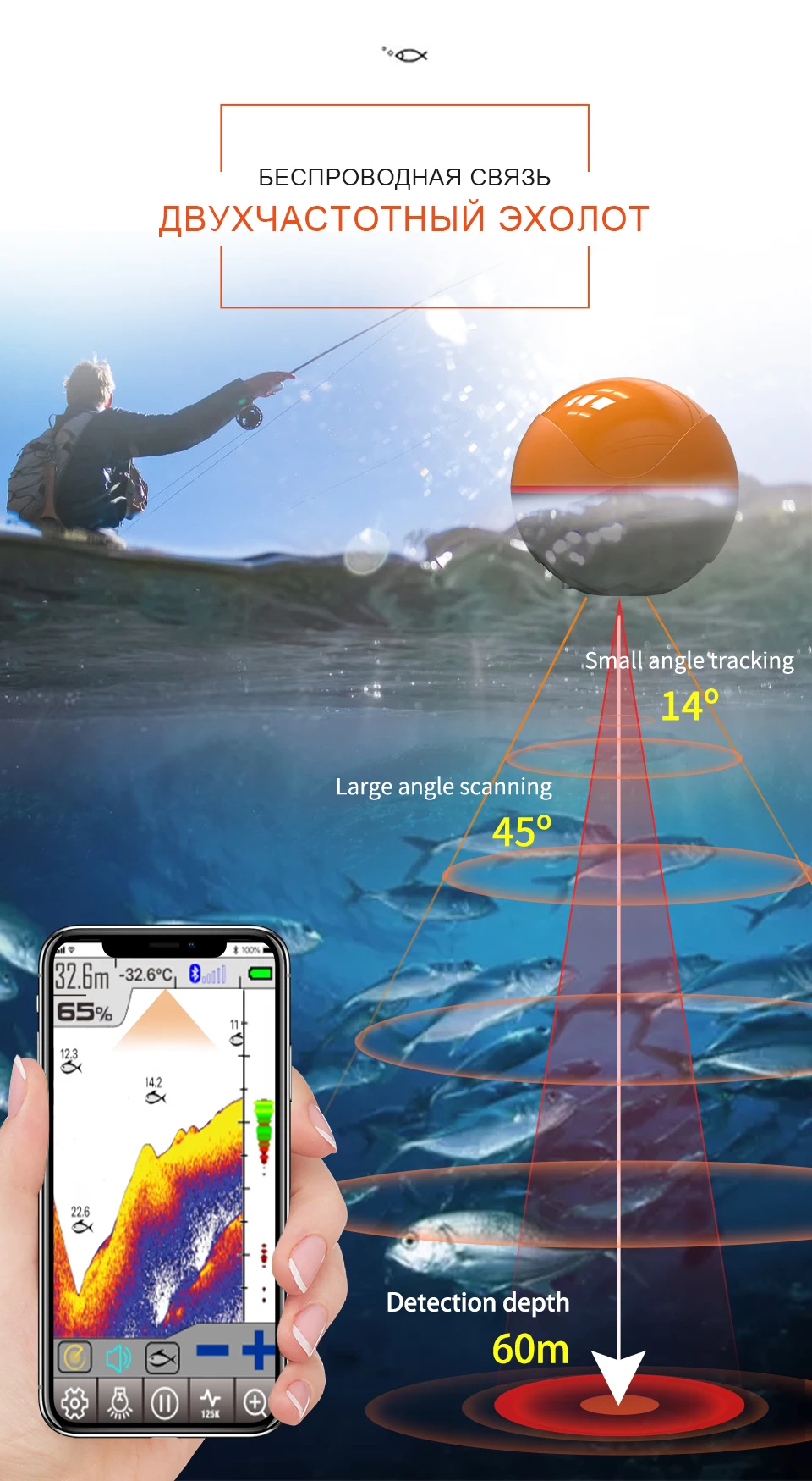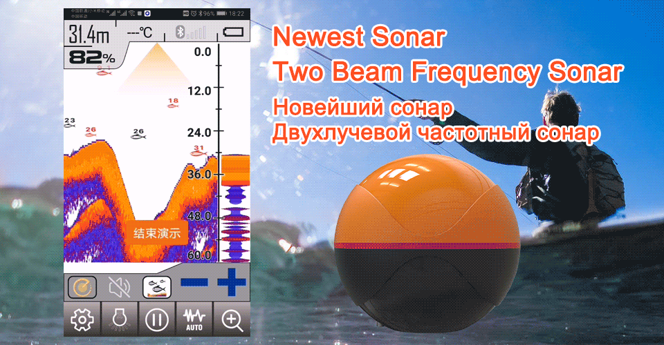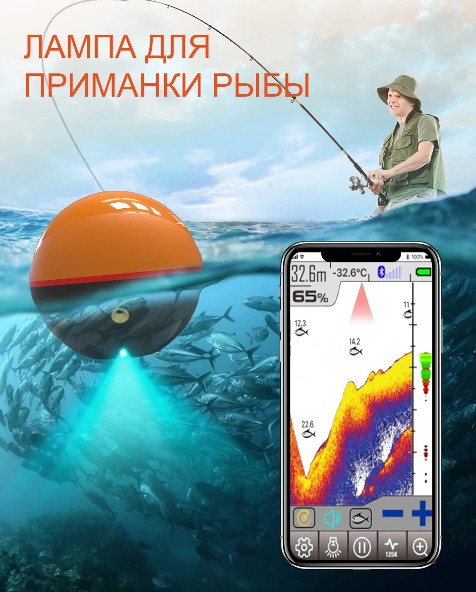 Erchang F68 беспроводной рыболокатор портативный эхолот глубины двухчастотный Sonar датчик сигнализации рыболокатор IOS и Android