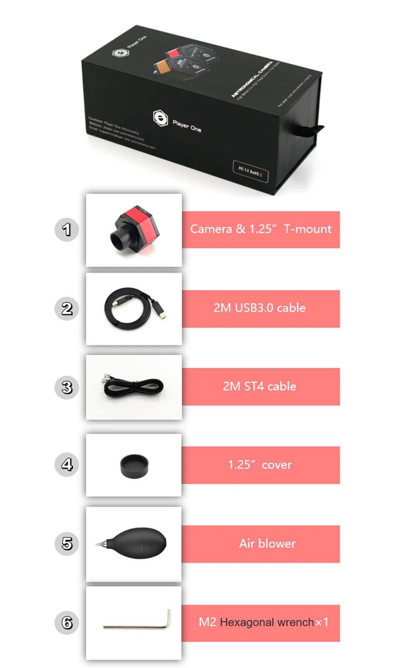 2. Камера Uranus-C is (IMX585), разработанная плеером One Astronomy, которая принимает Новейший цветной датчик формата Sony IMX585 1/1.2 ”. Размер пикселя 2,9 мкм вмещает глубину скважины 38,8 КЭ в общей сложности 8,3 МП (разрешение 3856*2180), а Диагональ-12,85 мм.