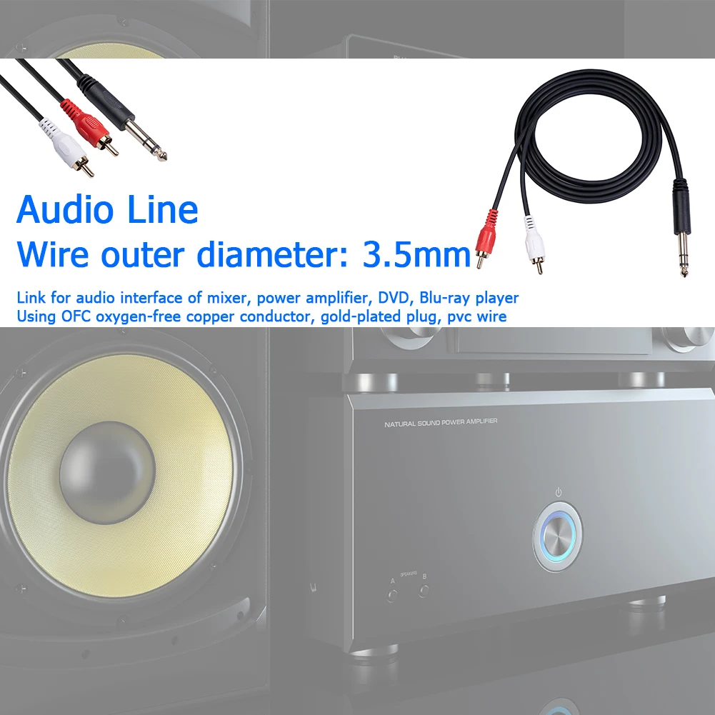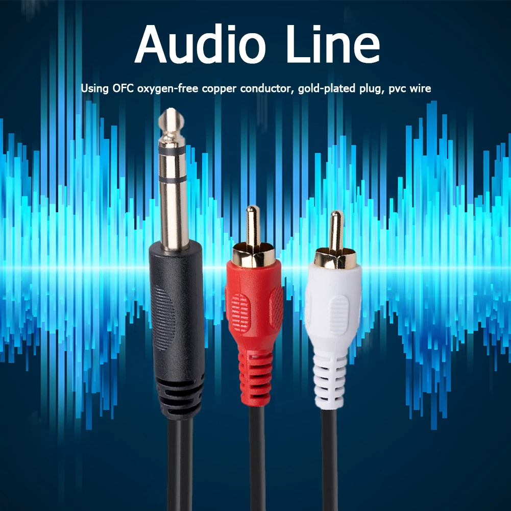 Двойной RCA для 1/4 дюйма TRS аудио кабель 6,35 мм стерео штекер 2 RCA штекер Phono Y сплиттер кабель 1,5 м/4.9ft