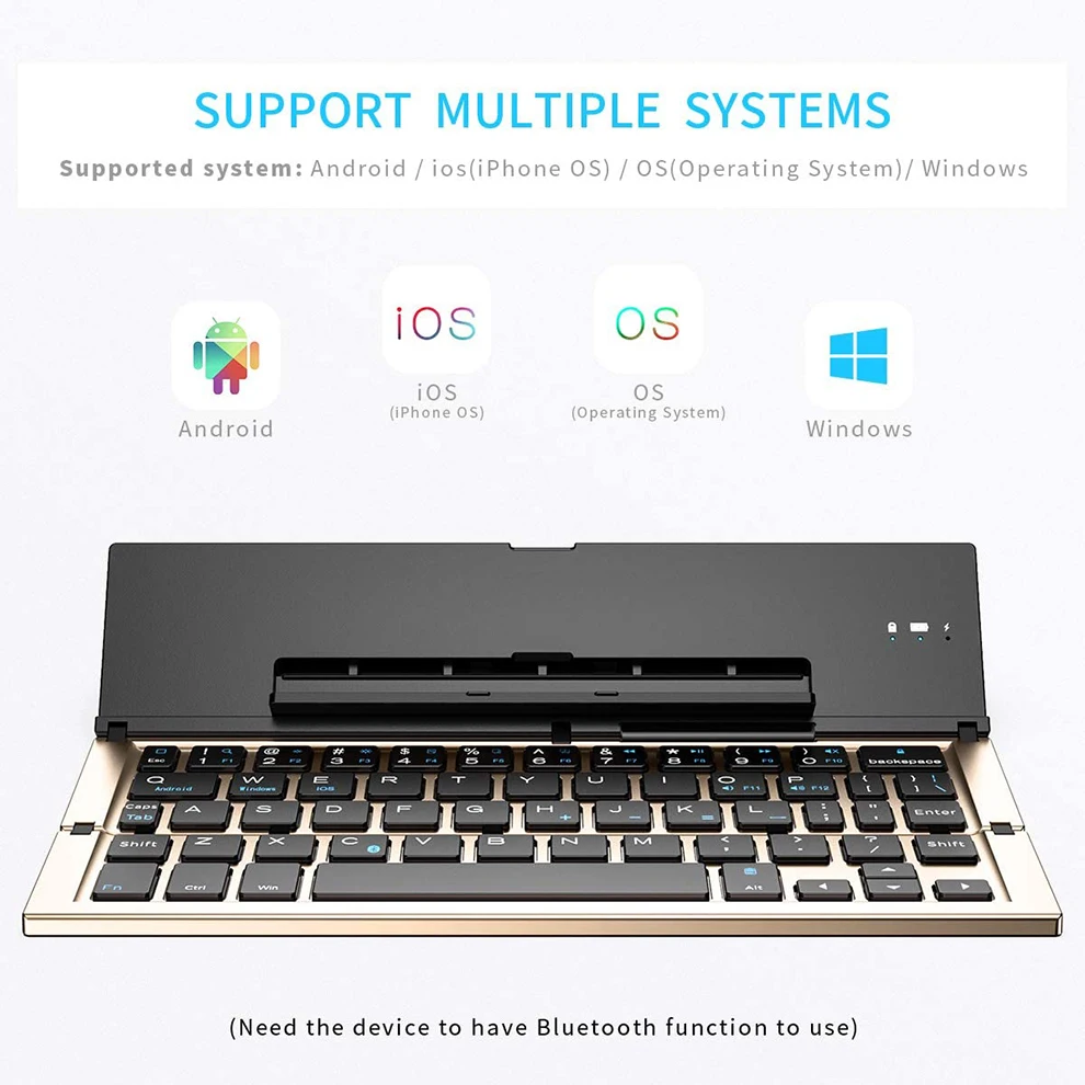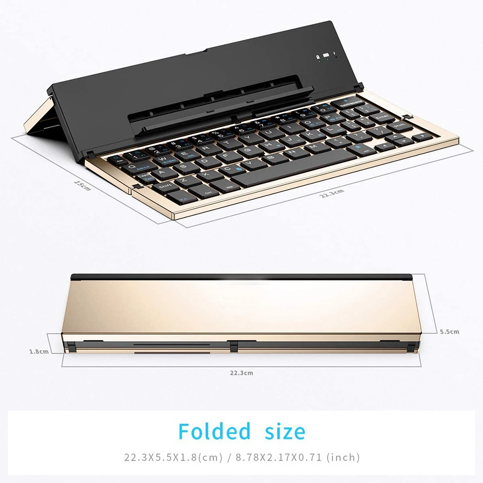 【Раскладной keyboard】: трехслойная bluetooth-клавиатура, добавляет больше функциональности, чтобы удовлетворить все потребности. Более длительный срок службы батареи, широкая совместимость, двойные bluetooth каналы, тройные складки и мини-Упакованные размеры, все они специально разработаны для легкого и портативного повседневного использования.