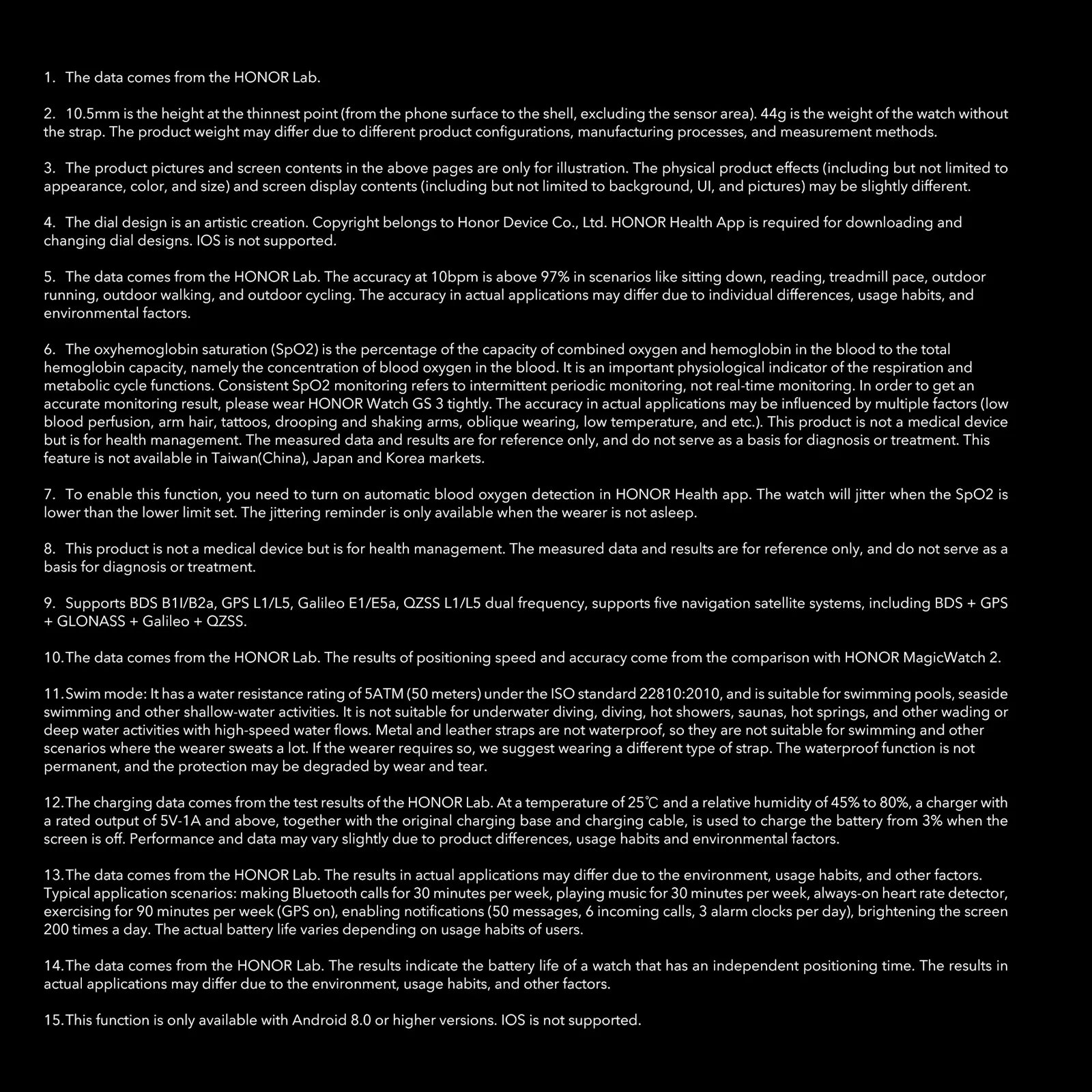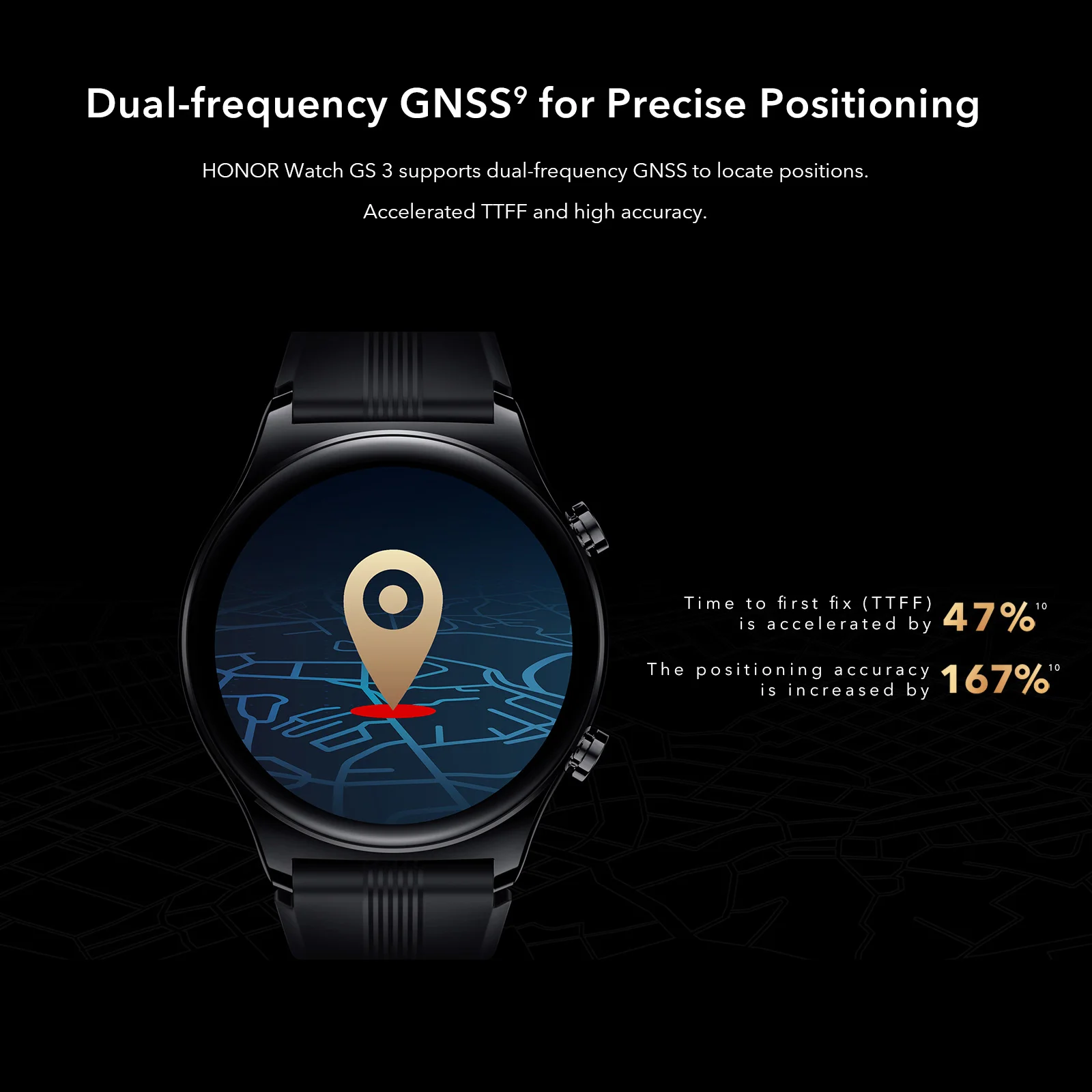 HONOR часы GS 3 поддерживает двухчастотный GNSS и 5 навигационной спутниковой системы в том числе BDS + GPS + ГЛОНАСС + Galileo + QZSS, который приносит Быстрое позиционирование с высокой точностью.