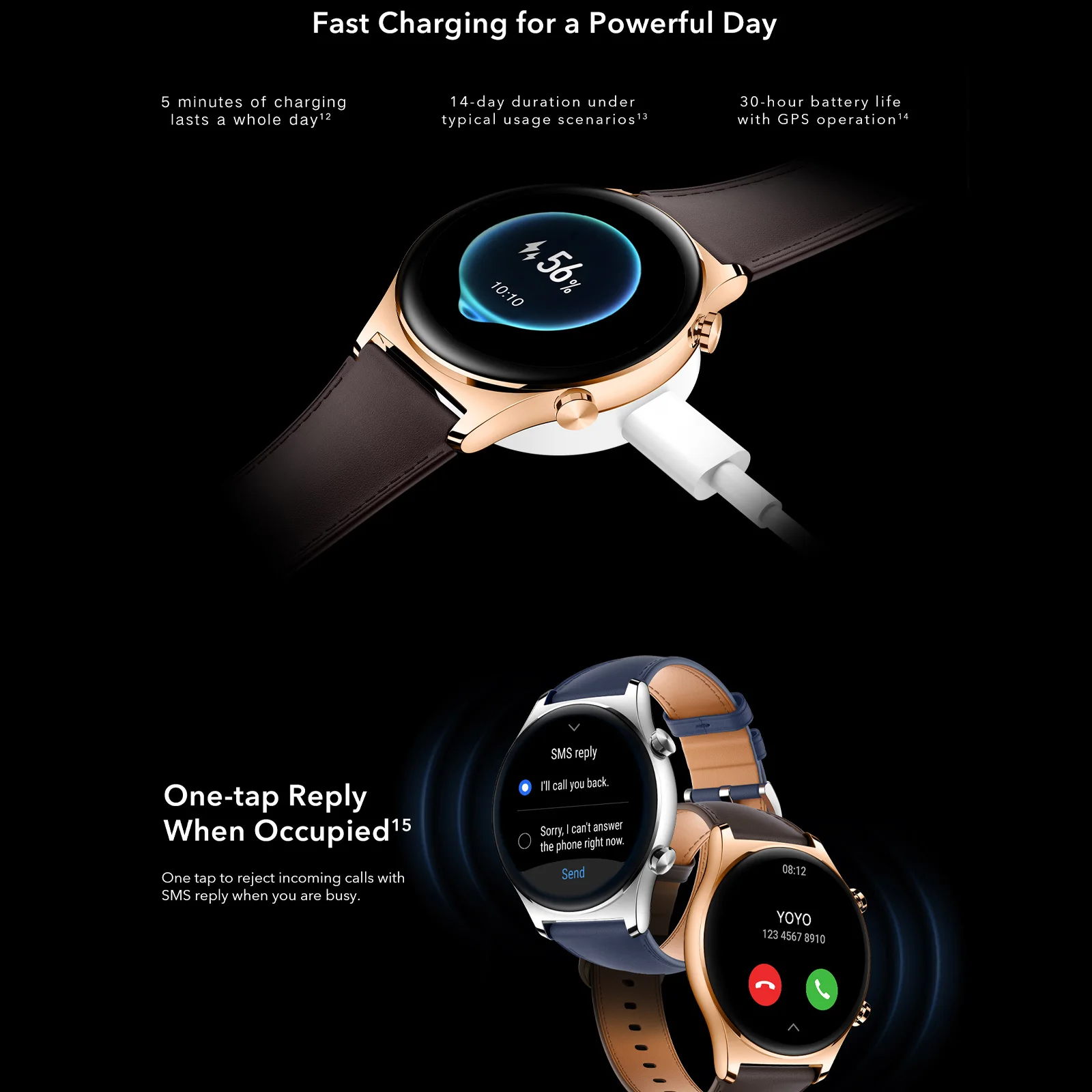 HONOR часы GS 3 обеспечивает книги контактов с функцией журнал вызовов, позволяет совершать телефонные звонки или отвечать на звонки на часах легко. Кроме того, одним нажатием, чтобы отклонить вызов с SMS воспроизведение, когда вы заняты.