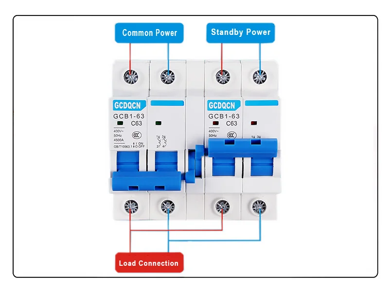 GCB1-63 МТС ручного переключения передачи подходит для двух-путь источника питания системы с питанием от сети переменного тока в переменного тока, 50/60 Гц, Номинальное рабочее напряжение 230V ~ 400V, номинальный ток от 6A ~ 63A. Он может вручную переносить источник питания для резервного питания или генератора, когда происходит общая неисправность, чтобы гарантировать надежность и безопасность питания. GCB1-63 МТС имеет защитную функцию перегрузки, низкого напряжения, короткого замыкания и фазы отсутствия, которая особенно подходит для использования в месте, где не допускается сбой источника питания, например, пожаротушения, больницы, рынок, военный проект, высотное здание, банк, ТВ-станция и так далее.