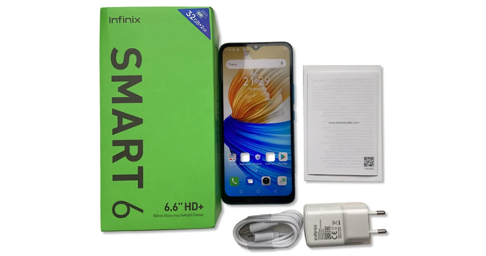 Infinix Smart 6 глобальная версия с оригинальным зарядным устройством США + адаптером ЕС