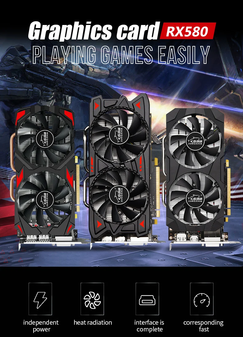 JINGSHA видеокарта RX 580 8 Гб 256Bit 2048SP GDDR5 видеокарты для AMD Radeon RX 580 серии VGA карты RX580 8G DisplayPort